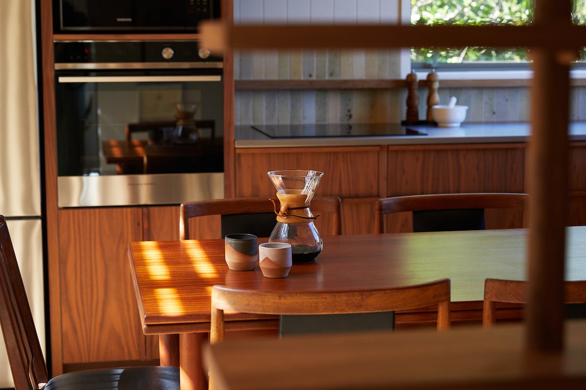 Tengdu þig aftur og hvíldu þig á Palm Beach House yfir mat og víni í glænýju arkitektu heimili á Waiheke-eyju sem er hannað af Strachan Group Architects Earthy ólífuolía, kryddlitir og gamaldags skreytingar gera það að verkum að afslappandi og róandi rými sem endurspeglar landslagið í kring og tengist náttúrunni í kringum það. Palm Beach er í stuttri göngufjarlægð fyrir morgungöngur og sundferðir á morgnana. Sumir af bestu víngerðum Nýja-Sjálands eru í stuttri akstursfjarlægð.
