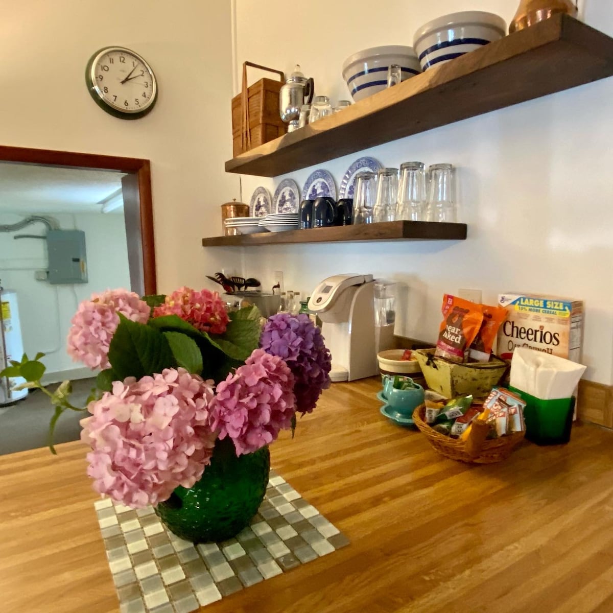 Stór einkastofa í stúdíóstíl á 2. hæð með queen-size rúmi, sófa, borði/stólum, sjónvarpi, ísskáp, örbylgjuofni, hitaplötu, engum OFNI eða ELDAVÉL, vaski, stórri sturtu, loftræstingu, hita, þvottavél og þurrkara og verönd. Boðið er upp á þráðlaust net. Sjónvarpið er með Netflix. Engar kapalrásir. Ofninn er óhefðbundinn. Hún er ekki í skáp. Hávaðinn við hlaup og upphaf verður meiri en vanalega yfir vetrarmánuðina. Eyrnatappar eru í boði fyrir þá sem eru viðkvæmir fyrir hávaða.