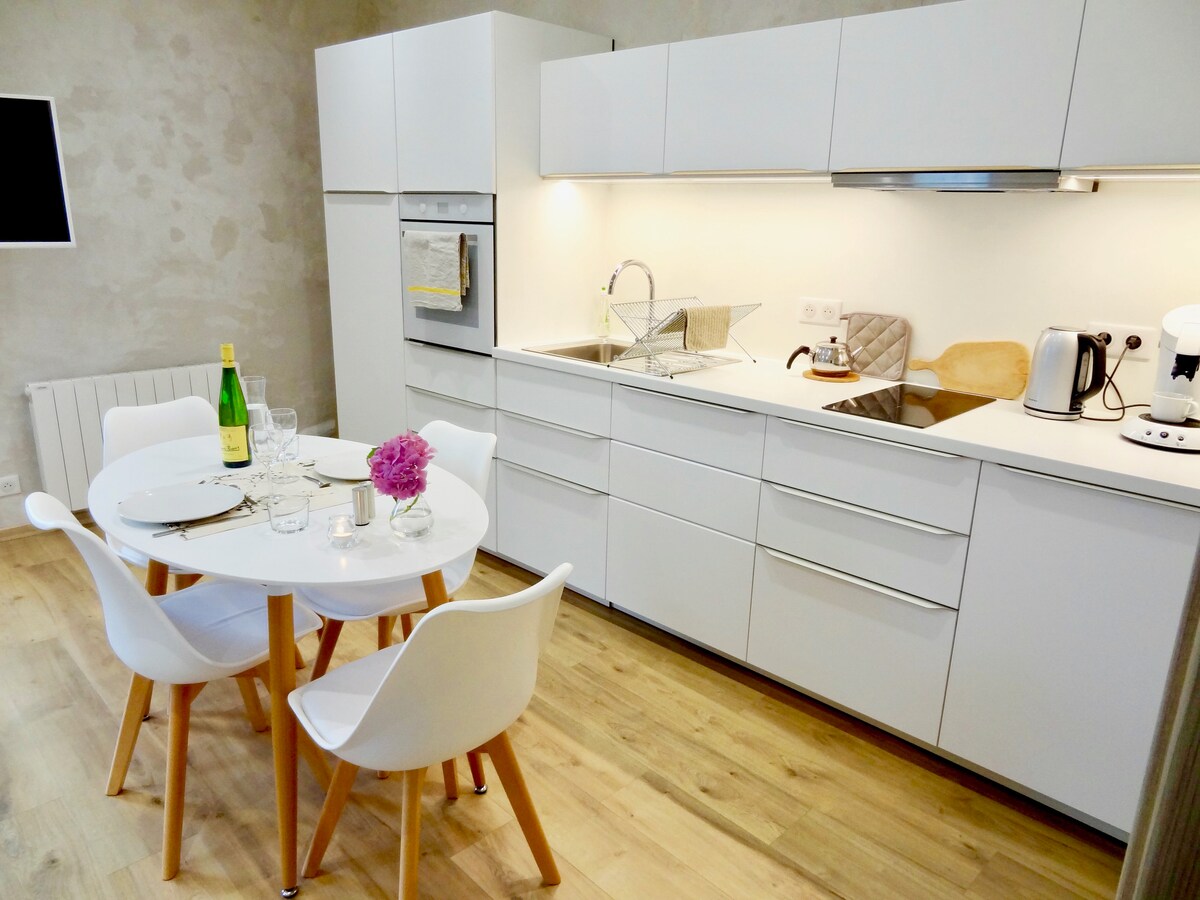 Kólumbusar, berir steinar og nútímalegar innréttingar eru sjarmi þessa staðar. Leigan okkar " Les Lanternes " með plássi fyrir 4 manns, er falleg 60 m2 íbúð á einni hæð með tveimur tvíbreiðum svefnherbergjum og einni einingu. Skógi vaxið útisvæði gerir þér kleift að njóta þessa friðsæla staðar.