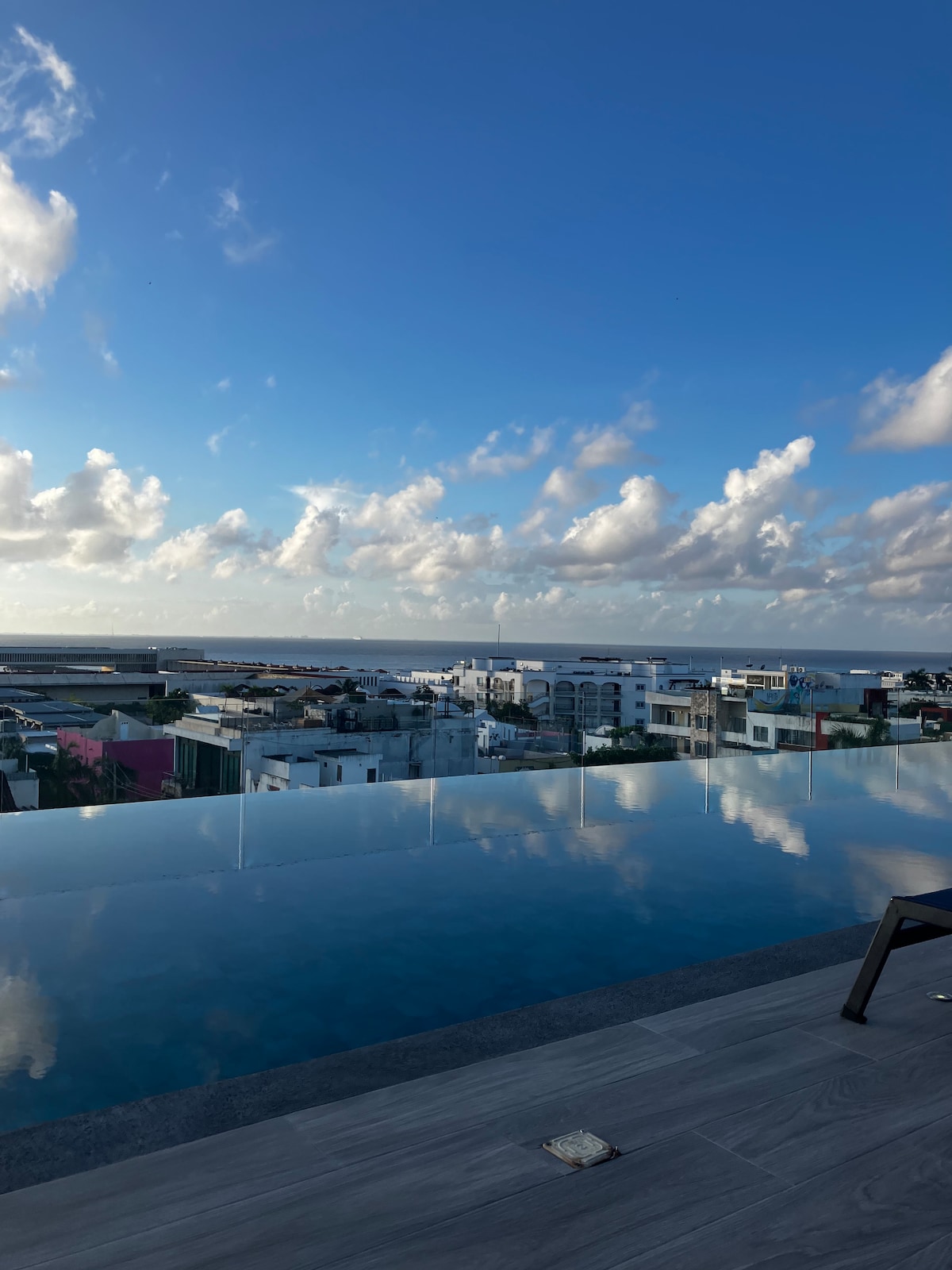 Stökktu í þessa nútímalegu 1BR-íbúð í hjarta Playa del Carmen. Stutt er á ströndina og líflega 5th Ave. Njóttu rúms í king-stærð, fullbúins eldhúss, svefnsófa og glæsilegs baðherbergis með baðkeri. Slakaðu á á þakinu með endalausri sundlaug, nuddpotti, bar og líkamsrækt. Tilvalið fyrir pör, ferðalanga sem eru einir á ferð eða glæsilega strandferð. Hvort sem þú ert hér til að skoða þig um, slaka á eða njóta sólarinnar er þessi íbúð þitt fullkomna afdrep í Riviera Maya.