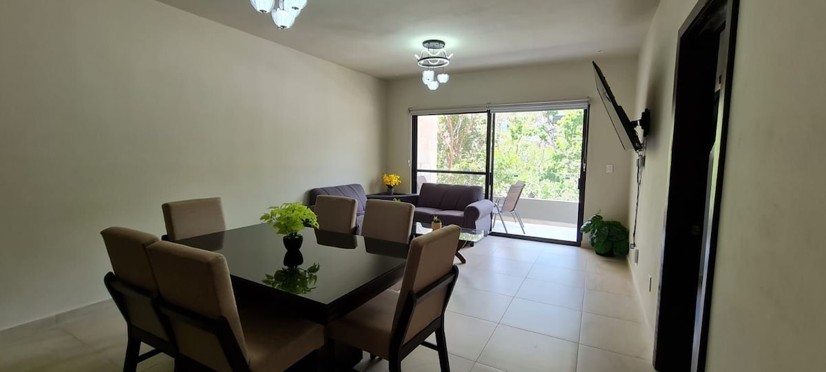 Komdu og njóttu kyrrláts og góðs staðar með sundlaug, verönd, hægindastólum og hengirúmi. Í eldhúsáhöldum til að elda. Á baðherberginu setjum við handklæði, hárþvottalög og líkamsþvott 🧴 Það er nálægt Chedraui og þú getur gengið þangað í 5-8 mínútur. Er einni húsaröð frá Main Street Juarez Avenue, ef þú getur tekið leigubíl eða sendibíl. Í Juarez avenue eru fáir litlir veitingastaðir, þvottahús og matvöruverslun Oxxo. Það er 3 húsaraðir frá flugbrautinni þar sem þú getur tekið sendibílana til Tulum eða Cancún. 20 mínutur ganga á ströndina.