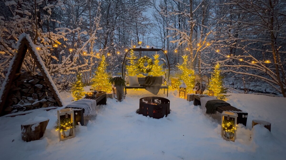 Kick back and relax in this cozy space. The studio provides a chill experience on 4+ acres, with private stream access, a small park-like forest, bird watching, meditative spaces, and walking paths throughout the forest. Included: WiFi, coffee beans, tea, firewood, tv, outdoor gear such as snow shoes and fishing gear on request. The treehouse is located in the heart of NB 90 minutes from sight seeing in all directions including Hopewell Rocks, Magnetic Hill, and historical Saint John.