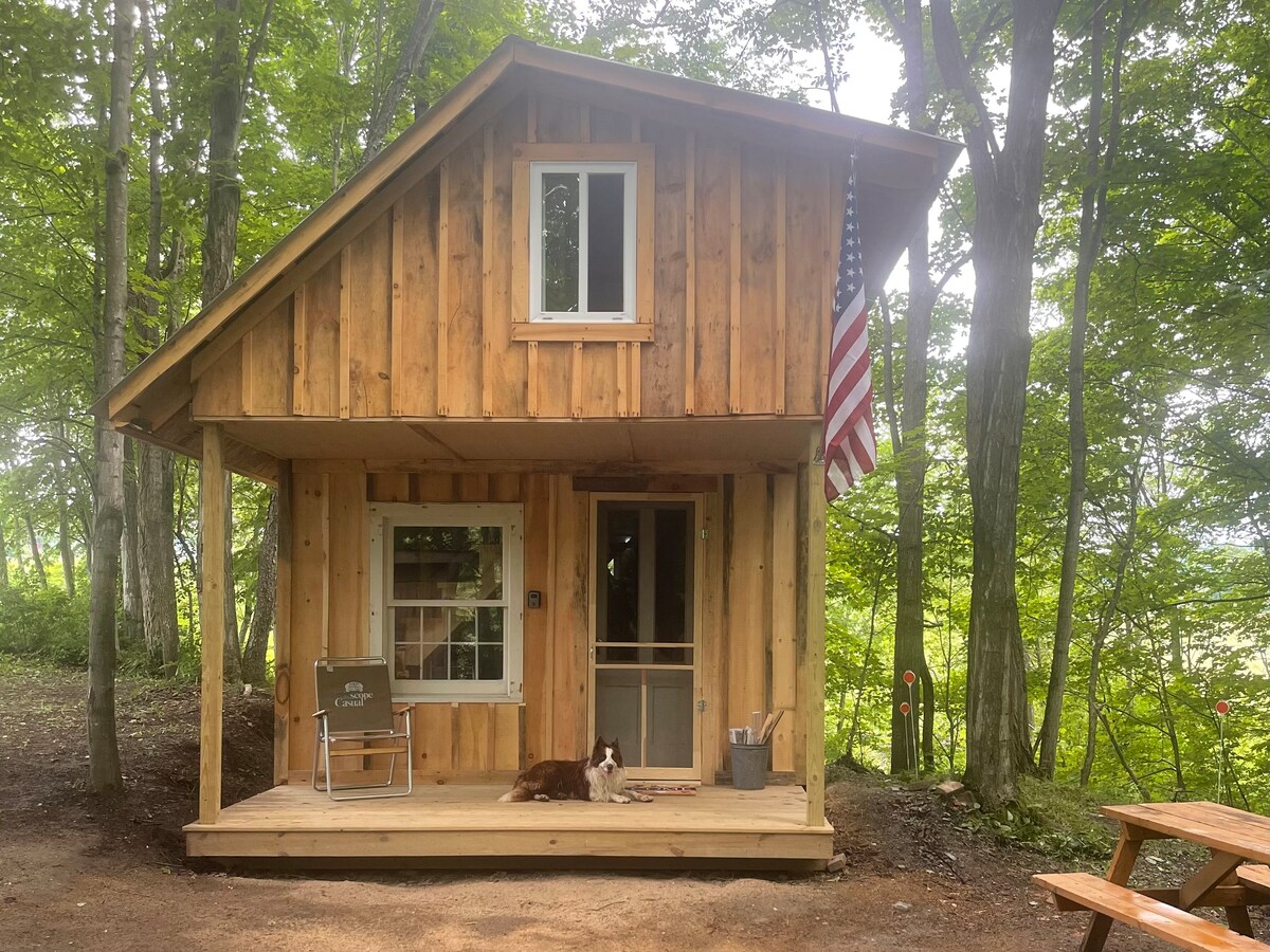 Get away from the busy-ness of life at this off-the-grid, Rustic Hideaway! Set on 23 acres with a stream, this newly- built tiny cabin will give you an opportunity to enjoy waking up to birds singing and squirrels chattering while having a unique stay. Grill out on the mini-grill, sit around the bonfire and watch the stars, and enjoy the beauty of the countryside when you stay at Rustic Hideaway. Unseen from the road, this cabin affords privacy and a quaint stay, while being away from it all!