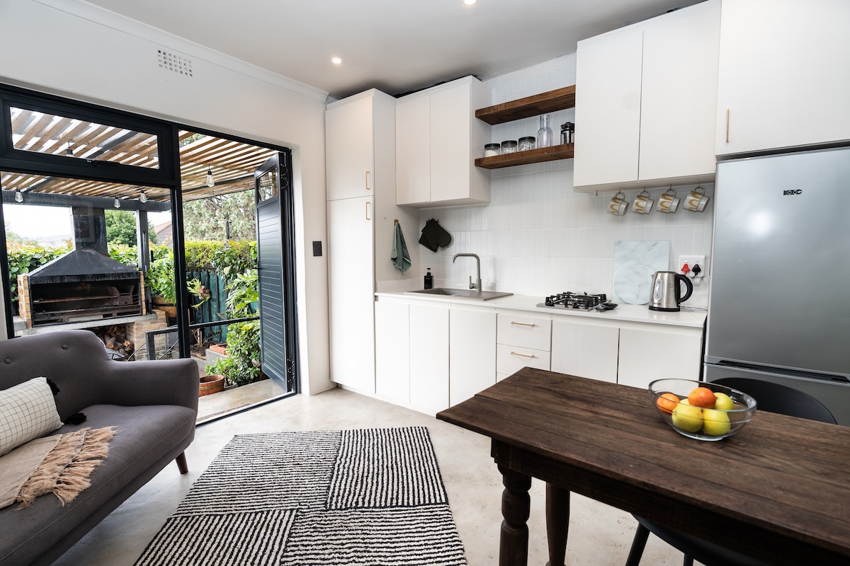 Relax in this stylish, modern, solar-powered loft in Mostertsdrift, Stellenbosch's prime neighbourhood. The open-plan kitchen, cozy living area, and private balcony with stunning mountain views to enjoy your morning coffee or a glass of wine, is perfect for up to three guests. Just a short walk from Lanzerac Wine Estate and close to cafes, shops, and dining spots. Enjoy scenic hikes or mountain biking in Jonkershoek Nature Reserve, wine tasting, or simply unwind—everything is at your doorstep!