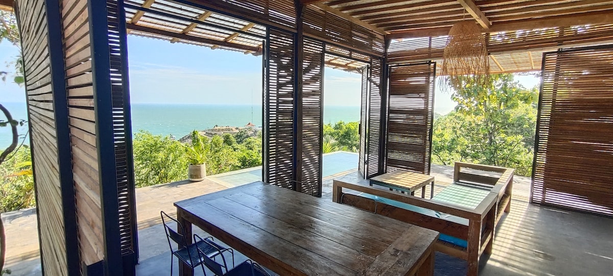 A private villa nestled atop a small hill, the perfect space to unwind and recharge. Surrounded by majestic cliffs, rugged rock formations, nearby chicken and cow farms, and the lush gardens of the local community. Step out onto the villa's front terrace and be captivated by the breathtaking view of the expansive ocean stretching before you. It only takes a 1.5 hour drive from the city of Yogyakarta (Malioboro) to Pura Samudra
