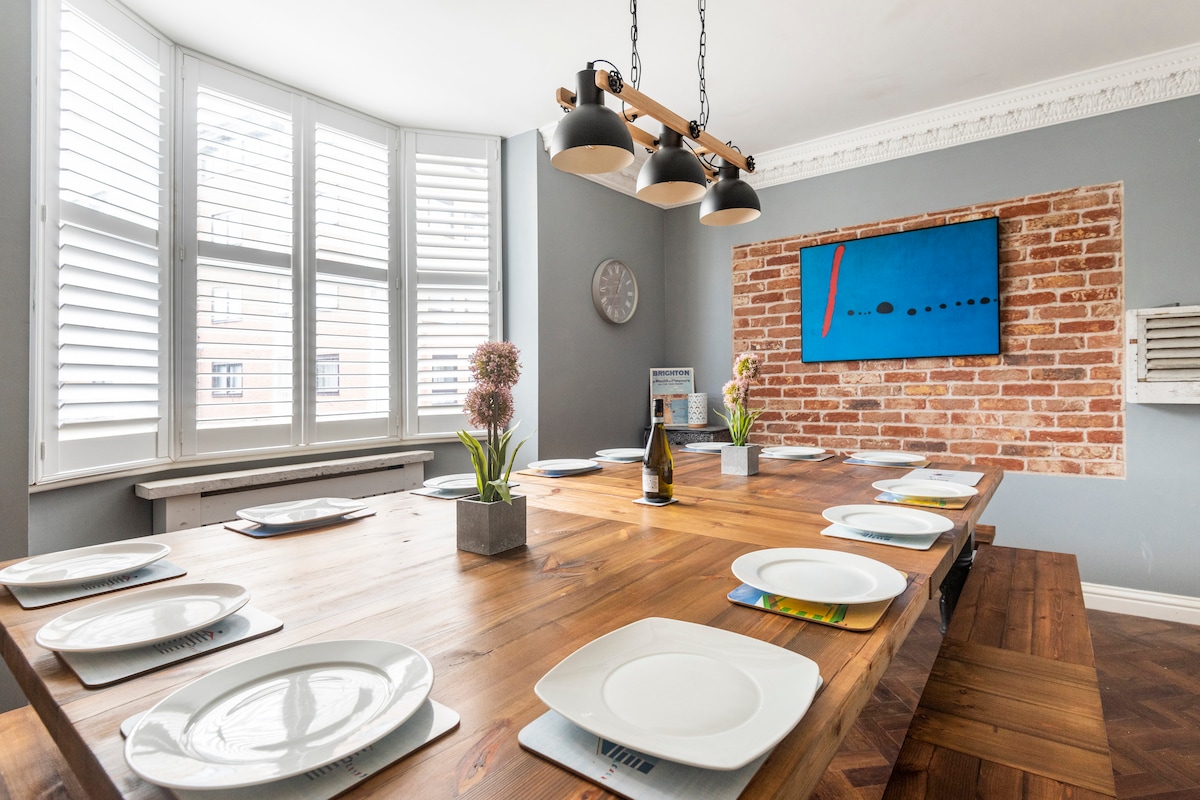 Þetta fjögurra hæða raðhús með tveimur svefnherbergjum er falinn gimsteinn og stútfullur af sögu. Hún er á hljóðlátum vegi með Regency Square Conservation Area - samt aðeins nokkrum sekúndum frá sjávarsíðunni og aðeins í göngufjarlægð frá miðborg Brighton. Þó að þetta heimili sé með bústað í stíl við það er innra rýmið mun rúmmeira en búist var við og hefur verið hannað til að hámarka rýmið og birtuna í öllu rýminu. Yndisleg lítil verönd fyrir utan þar sem hægt er að borða úti.
