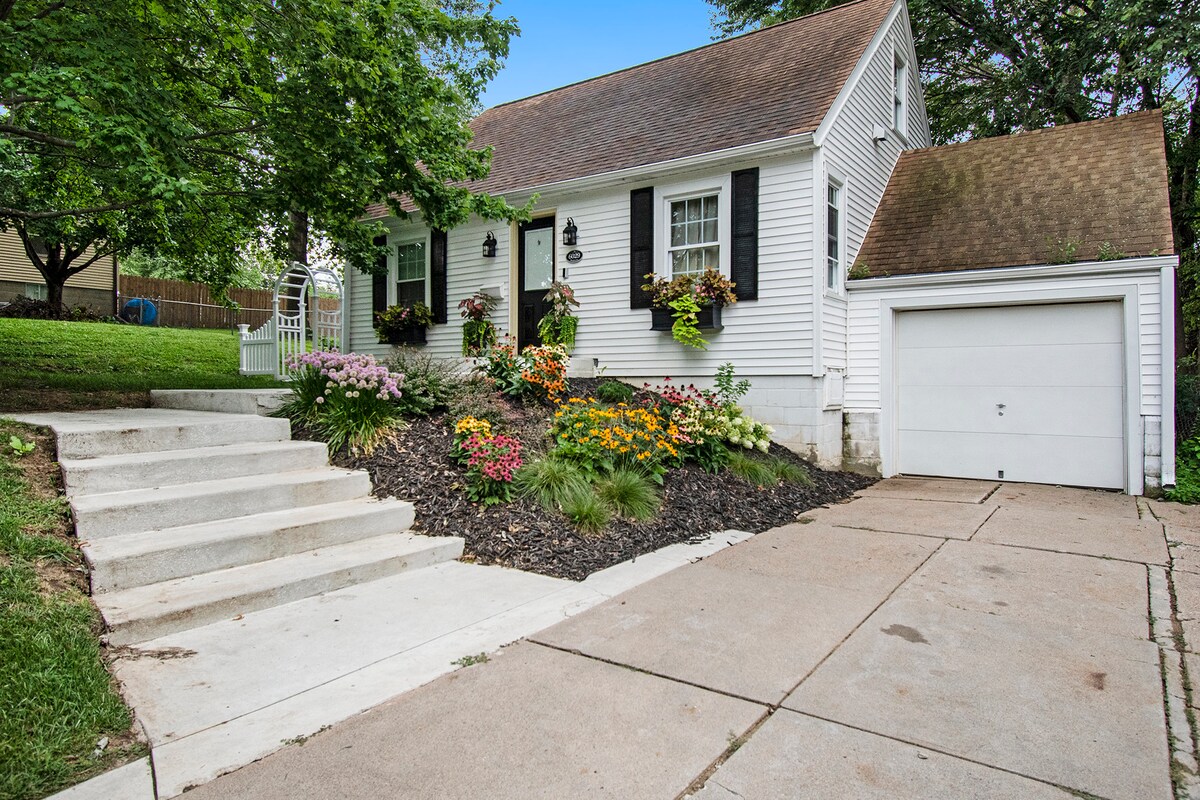 Slakaðu á með allri fjölskyldunni á þessu friðsæla tveggja svefnherbergja heimili. Fallegt rólegt hverfi nálægt millilöndum, íþróttavöllum, IWCC, Henry Doorly dýragarðinum, hjóla-/hlaupastígum, miðbæ Omaha, gamla markaðnum, CHI Center, Eppley Airfield og fleiru. Rúmgóður trjáfylltur einka bakgarður, útiverönd og grill. Næg bílastæði. Frábært þráðlaust net og Netflix, YouTube sjónvarp og Discovery+. Þvottavél/þurrkari í boði. Hundavænt en engir kettir takk. Engar samkomur, viðburði eða veislur inni eða utandyra.