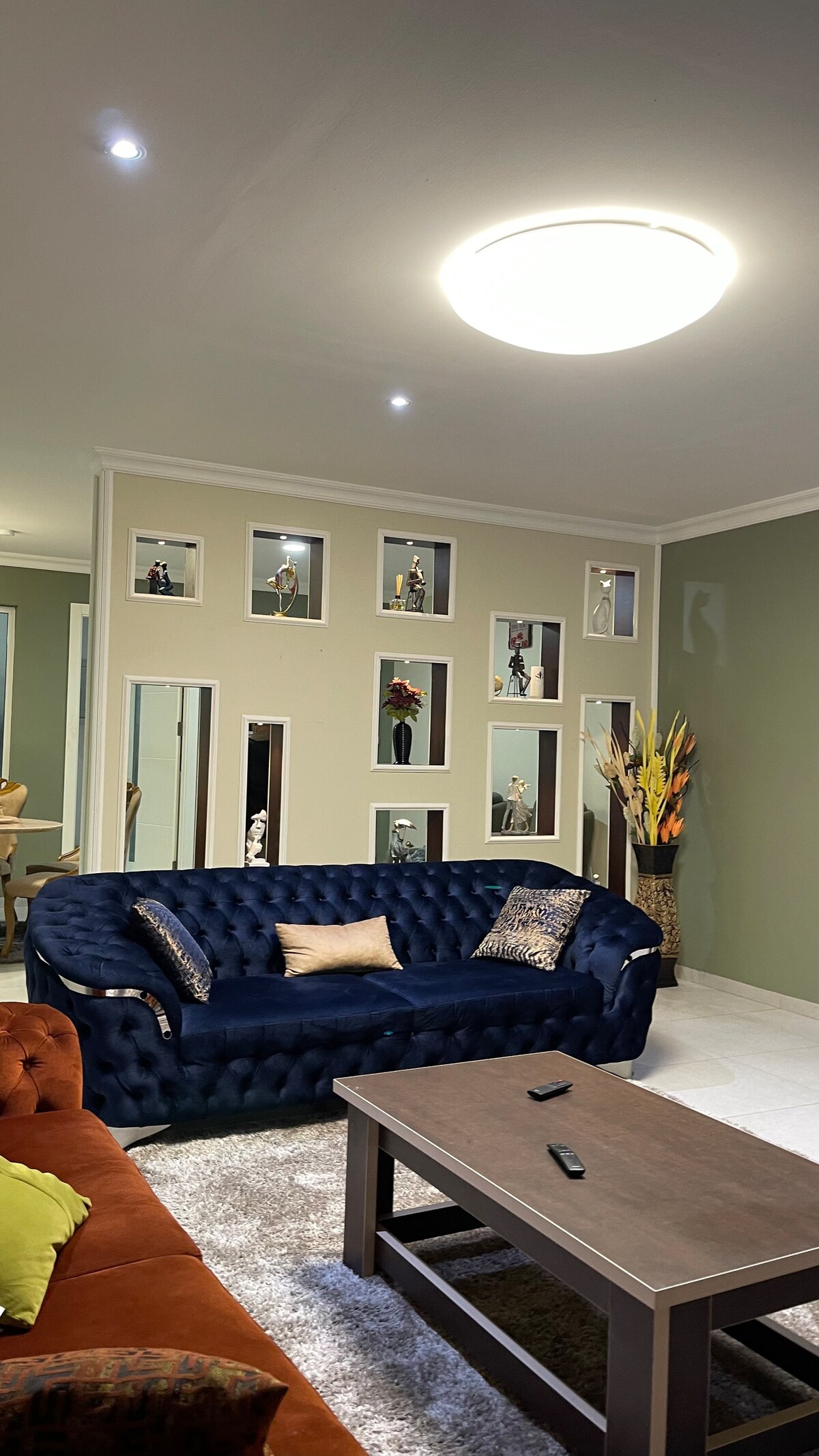Located in the suburbs of Galilea-Amanfro, Greater Accra. 2 miles from Galilea Market, 5 miles from West Hills Mall, and 5 miles from the beach. The 5,600 sq. ft home is gorgeous and comfortable for your stay, you will occupy the first floor of 2,500 sq.ft with 11-foot-high ceiling, an open concept floor plan, fully equipped gourmet granite tops kitchen, 3 en-suite bedrooms, washer, dryer, water heaters and air conditioners for all the rooms, access to gym, basketball, bicycles, barbecue area.
