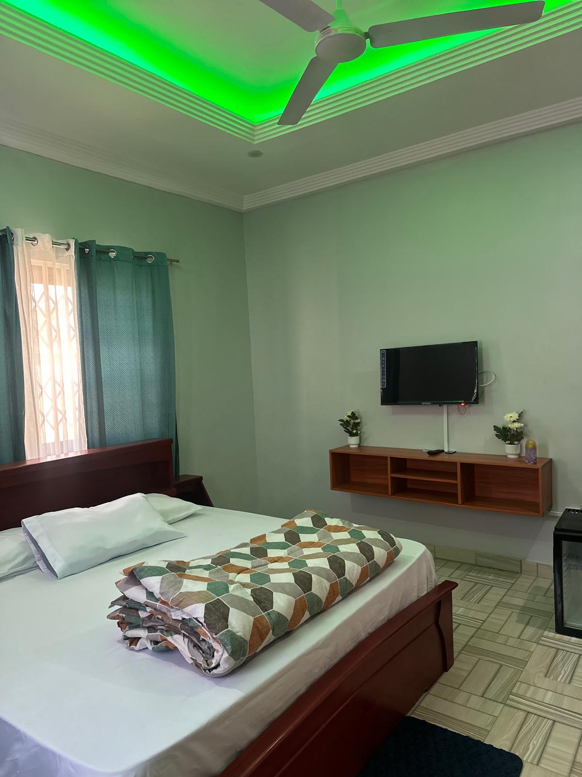 Þessi glæsilega gististaður er tilvalinn fyrir hópferðir/einstaklingsferðir. Tilvalið frí, fyrirtæki eða pre-wedding áfangastað. Búðu til ánægjulegar minningar á þessum einstaka og fjölskylduvæna stað. Njóttu ferskrar golu frá vatninu í nágrenninu og slakaðu á í garðinum. Nýuppsettar sólarplötur veita varaafl. ACC flugvöllur er ~45 mín akstur, og Kokrobite Beach er ~15 mín akstur . Við bjóðum upp á akstur frá flugvelli og akstur um bæinn meðan á dvöl stendur gegn aukagjaldi. Verð er fyrir 1-2 gesti auk USD 15/viðbótargesta .