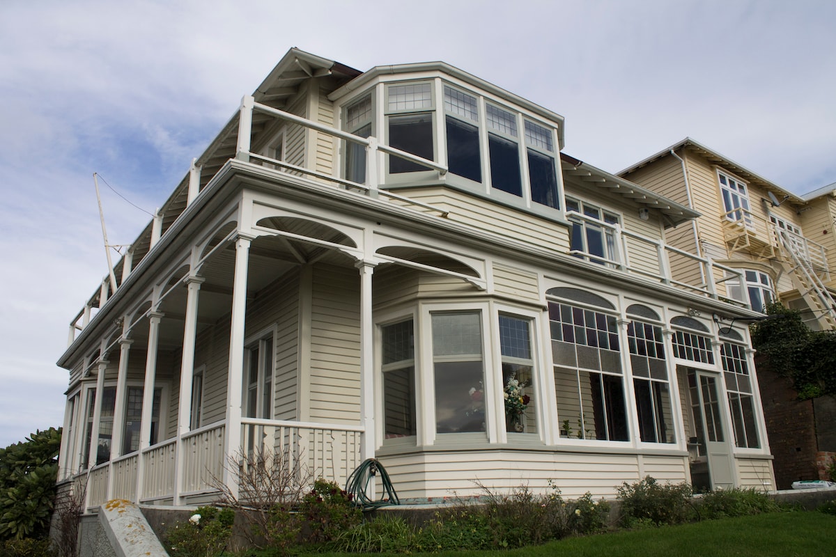Our Historic Victorian House, reputed to be the family home of Sir Julius Vogel (Prime Minister of NZ in 1800s). Finnimore House's proximity to the CBD, South Mt Cook, Newtown, and Vogeltown offers free secure off-street parking for 3-4 cars; 2 large guest bedrooms available ( Blue Room and Library Room) downstairs, with all-day sun; private guest bathroom (not en-suite) ; access to warm living and dining rooms, verandahs and decks.