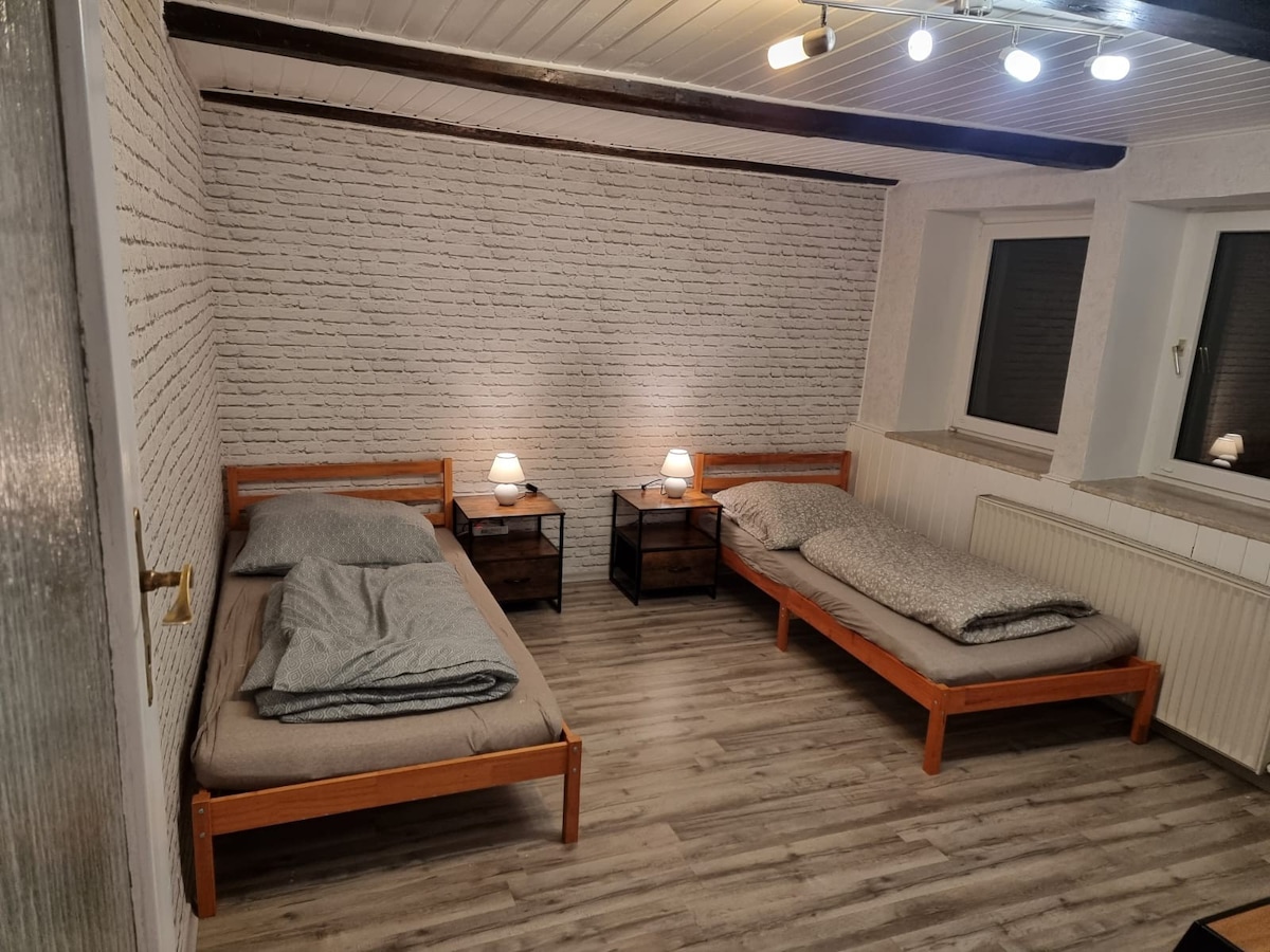 Bústaðurinn okkar er miðsvæðis en samt í miðri sveitinni. Á 10 mínútum er hægt að ganga í gegnum borgarskóginn (girðing) til miðborgarinnar og rétt fyrir aftan heimili þitt er Hohenrode Park. Vegna næsta nágrenni við Harz eru mörg tækifæri til að skipuleggja fríið. Vona að þér líði vel í fallega innréttaða bústaðnum okkar. Ókeypis bílastæði er í boði í húsinu.