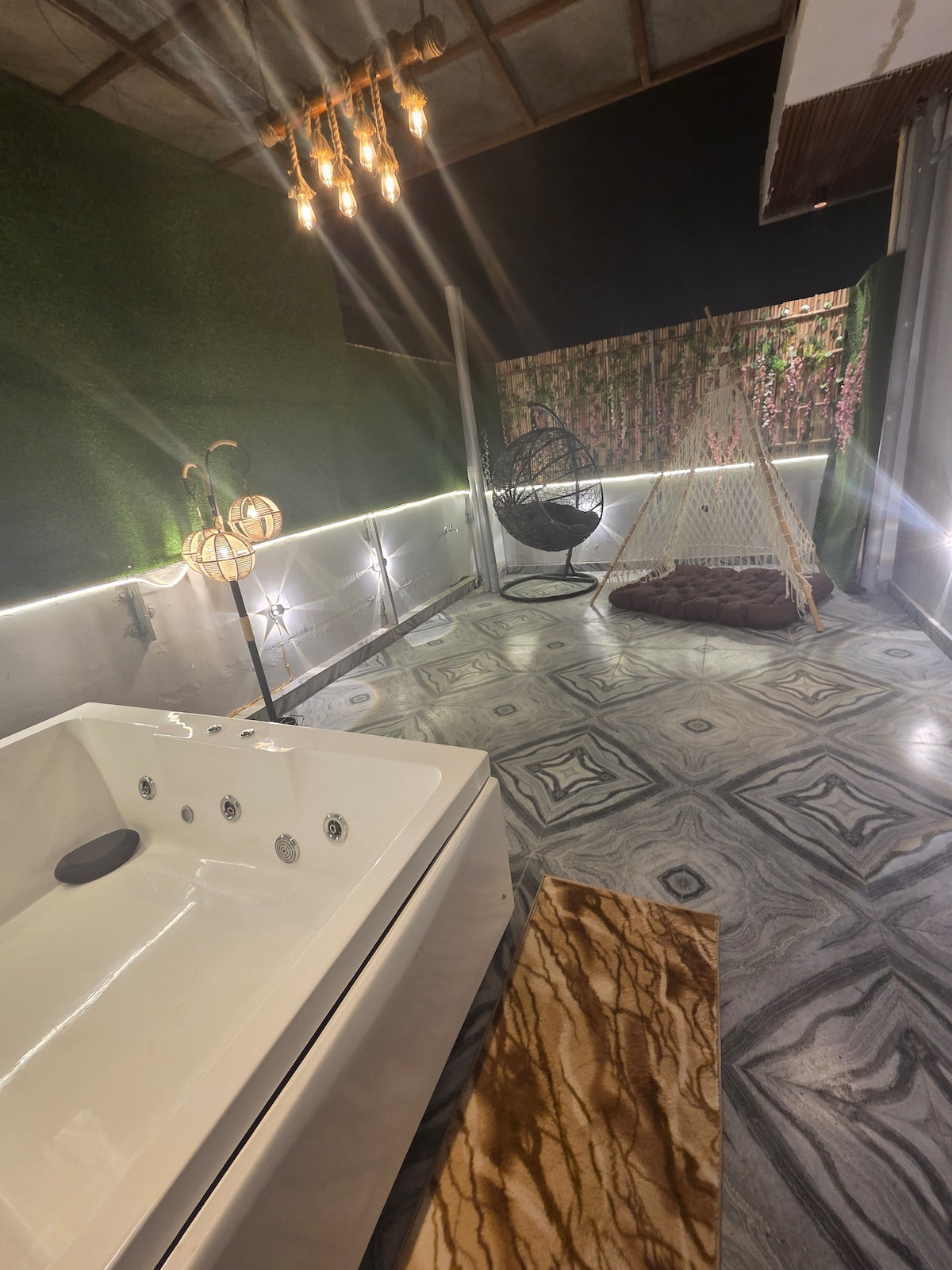 💘 A Space to Fall in Love All Over Again Warm Jacuzzi Glow — sink into bubbles, clink glasses, whisper dreams Private Terrace Nights — fairy lights, fresh air & stars as your witnesses Cozy King Bed — wake up wrapped in each other, not alarms Romantic Ambience — candles, soft lighting & soothing music vibes Perfect Privacy — just the two of you, no interruptions