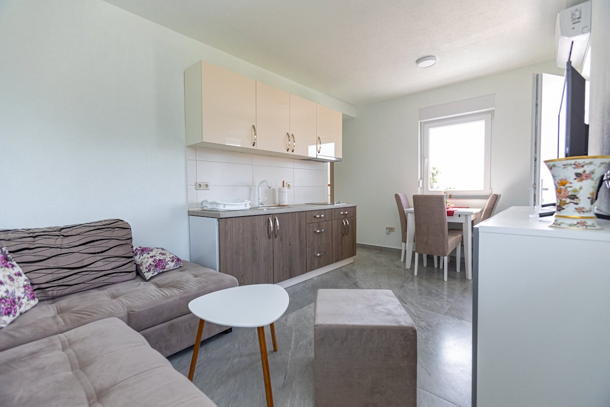 Nútímalegu íbúðirnar okkar í Čapljina bjóða upp á þægilega og glæsilega gistingu í aðeins 400 metra fjarlægð frá miðbænum. Njóttu rúmgóðra herbergja með yfirgripsmiklu útsýni yfir bæinn og náttúruna í kring. Hver íbúð er fullbúin með eldhúsi, þráðlausu neti, loftræstingu og stórum svölum. Fullkomið fyrir bæði stutta dvöl og langtímaheimsóknir. Ókeypis bílastæði eru í boði við eignina. Upplifðu sjarma Hersegóvínu á frábærum stað!