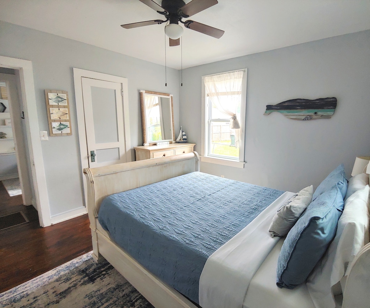Pensacola Lighthouse Retreat er annað Airbnb okkar í Pensacola. Við nutum þess að taka svo mikið á móti gestum að við keyptum 1927 Tudor-bústað á East Hill-svæðinu í Pensacola, endurnýjað og skreytti hann með vitum frá Bandaríkjunum með Pensacola-vitanum. Bústaðurinn er 1300 fermetrar að stærð og með nútímalegu skipulagi á gólfinu í stofunni með nægu plássi fyrir stærri fjölskyldur eða tvær fjölskyldur. Tvö svefnherbergi, eitt baðherbergi og mikið útisvæði, þar á meðal sturta, rúmar stærri hópa.