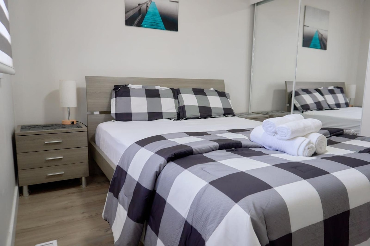 Njóttu þessarar nýju kjallarasvítu með einu svefnherbergi, afþreyingarsvæði, nútímalegu baðherbergi í þremur hlutum, borðstofu, eldhúskrók og eigin þvottavél og þurrkara. Húsið er staðsett í nýju samfélagi í Winnipeg, í 6 mínútna akstursfjarlægð frá matvöruverslun og veitingastöðum, í 10 mínútna akstursfjarlægð frá Kildonan-garðinum og samfélagsskóla. Borgarráð Winnipeg samþykkti hækkun á gistináttaskatti úr 5% í 6%. Frá og með 1. apríl þurfa rekstraraðilar skammtímaútleigu að innheimta þennan skatt af öllum leigueignum.