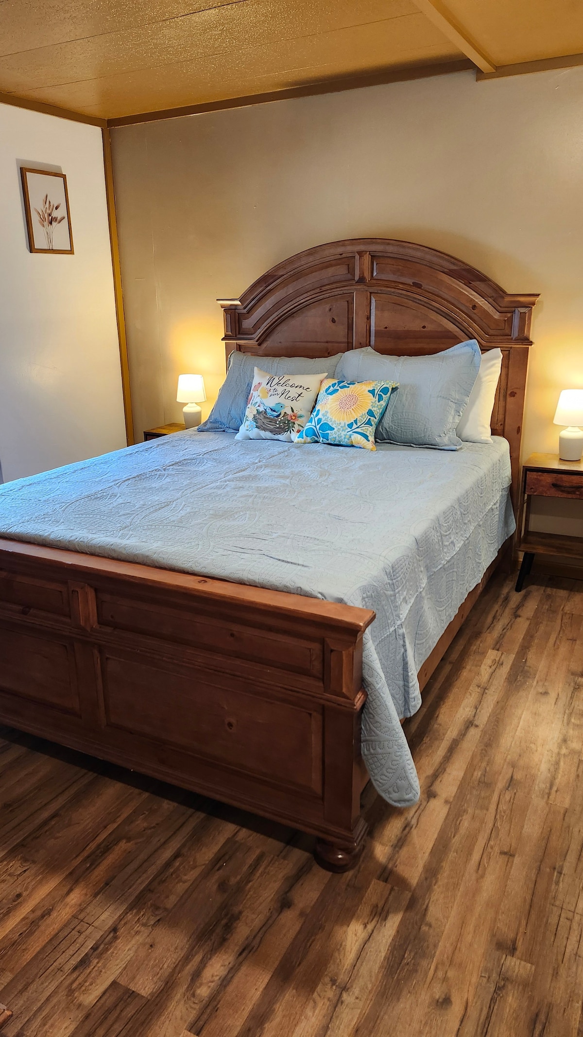 Hello, Our guest house is very private, quiet, cozy, secure and exceptionally clean. A great couples retreat with 2+miles of hiking trails and a vast space for outdoor activities and wildlife viewing. The beds are comfortable and the heat and air conditioning are great. We have all the amenities...all linens are furnished. There is a washer, dryer, iron and hair dryer and detergent. We are nestled on over 100 acres of land and are 1000 feet from the nearest highway.