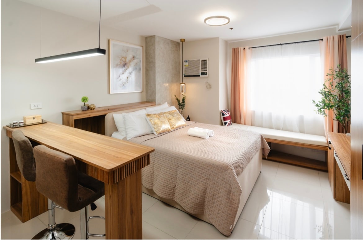 One Regis – accommodates up to 6 guests (extra charges may apply). Spacious Minimalist 1BR Condo Overlooking the Pool. Fully furnished and designed for comfort, this unit. Enjoy air-conditioning, high-speed WiFi, an equipped kitchen, and a modern shower in a secure building with 24/7 security. Perfect for couples, solo travelers, families, or professionals. Conveniently located near malls, restaurants, cafes, and transport hubs—your stylish city retreat awaits!