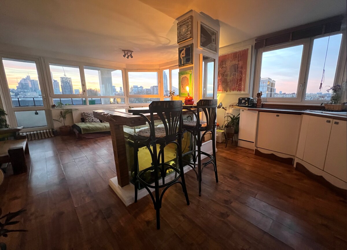 This beautiful flat has 2 dbl bedrooms & 2 sgl mattresses surrounded by original art, an aquarium, and the most amazing views of the city with spectacular sunsets. South and west facing, it's filled with bespoke furnishings and lush plants. It's ideal for artists & art lovers to relax or work, providing the perfect backdrop for an inspiring London stay. It's in a peaceful residential part of vibrant Hoxton, surrounded by excellent galleries, parks, clubs, restaurants, boutiques, and markets.