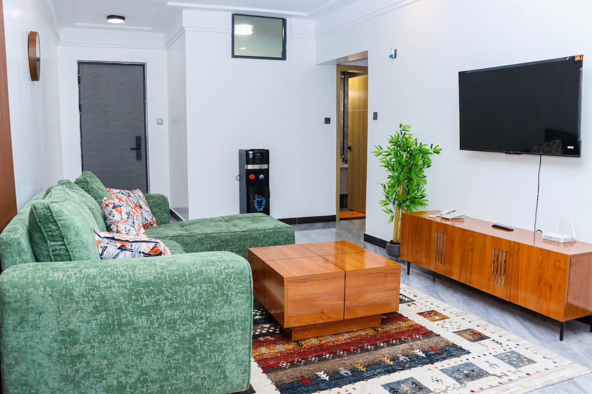 Þessi stílhreina íbúð er nútímaleg, rúmgóð og þægileg, með einu svefnherbergi og en-suite baðherbergi, lúxus Queen size rúmi, fallegu borðstofu, svefnherbergi og setustofu Netflix-TV, svölum, eldhúsi og þvottavél. Öll þægindi eru til staðar, þar á meðal ótakmarkað hraðvirkt þráðlaust net og viðskiptaaðstaða. Staðsett í rólegu laufskrúðugu úthverfi en einnig þægilega nálægt Westgate, verslunarmiðstöðvum Sarit og Lavington, veitingastöðum, viðskiptamiðstöðvum, CBD og í nokkurra metra göngufjarlægð frá næturlífinu í Westlands.