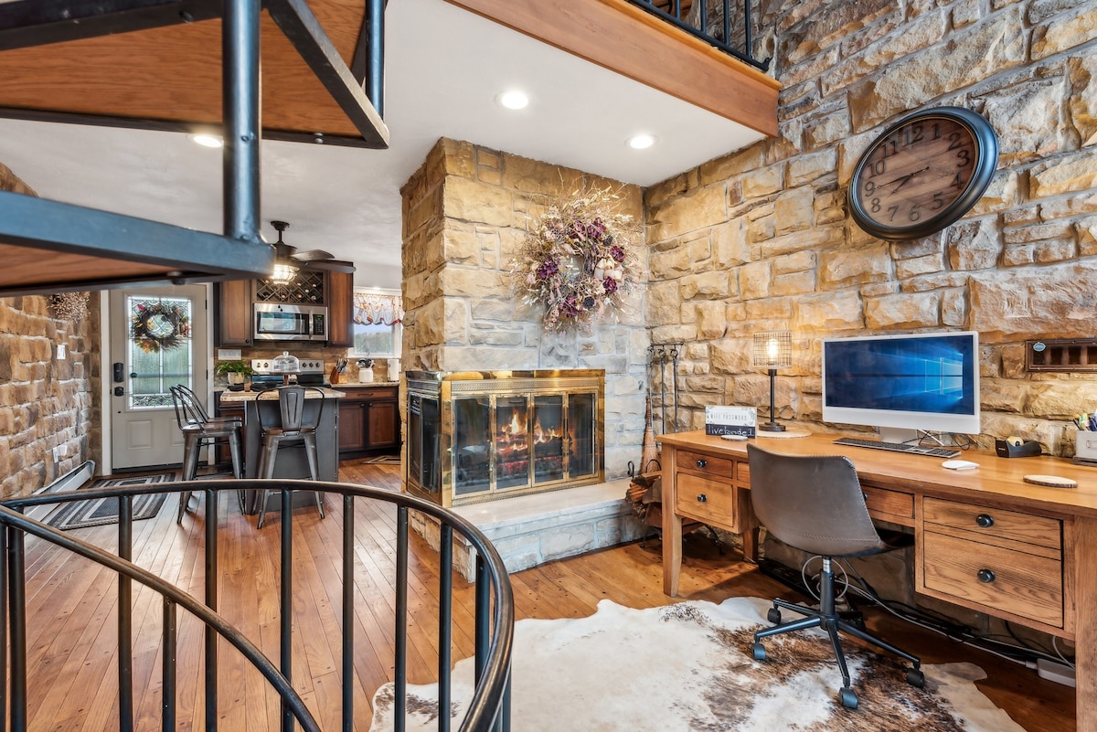 Uppgötvaðu ævintýri í Laurel Highlands í þessari einstöku 3BR, 3BA, ásamt bónuslofti, A-rammahúsi, steinsnar frá miðbæ Ligonier. Heimilið er staðsett á fallegum og upphækkuðum stað og býður upp á yfirgripsmikið útsýni yfir hinn táknræna demant og stórfenglegt náttúrulegt landslag. Slakaðu á og slappaðu af í lúxus heita pottinum eða tunnusápunni um leið og þú nýtur magnaðs umhverfisins. Hvort sem þú ert að leita að útivist eða notalegri afslöppun býður þetta heillandi afdrep upp á fullkomið frí fyrir alla!
