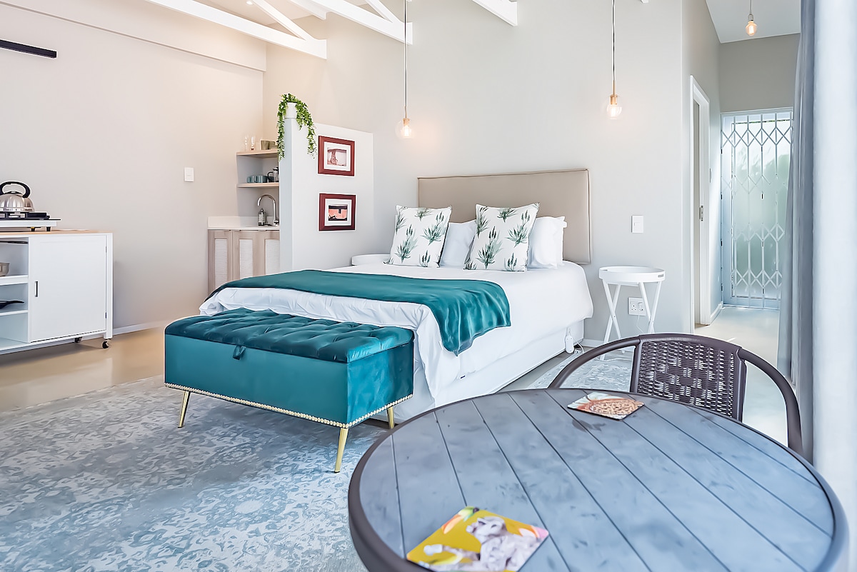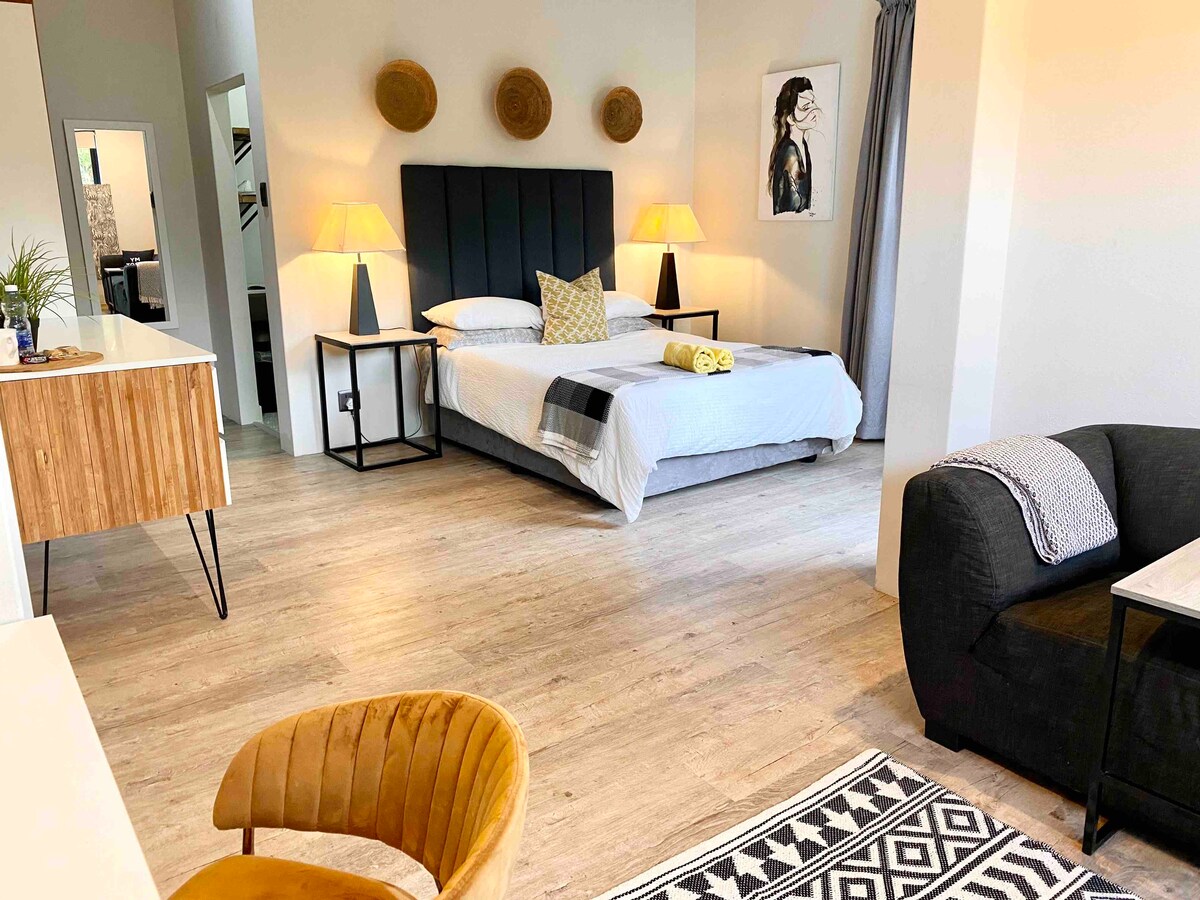 Frábær staðsetning með 15m frá Sandton , 15 m frá flugvelli og stutt að ganga að miðbæ Flamingo. Stílhreint garðstúdíó í öruggu og íburðarmiklu húsnæði með sérinngangi. Comfortable Queen Size Bed and bathroom en Suitr. Boðið er upp á skyndikaffi og te og þú hefur einnig aðgang að grunnbúnaði til að útbúa einfaldar máltíðir þar sem í herberginu er ísskápur með bar, örbylgjuofn, ketill, brauðrist, spaneldavél og hnífapör (enginn ofn). Láttu þér líða eins og heima hjá þér í þessu persónulega og örugga himnaríki.
