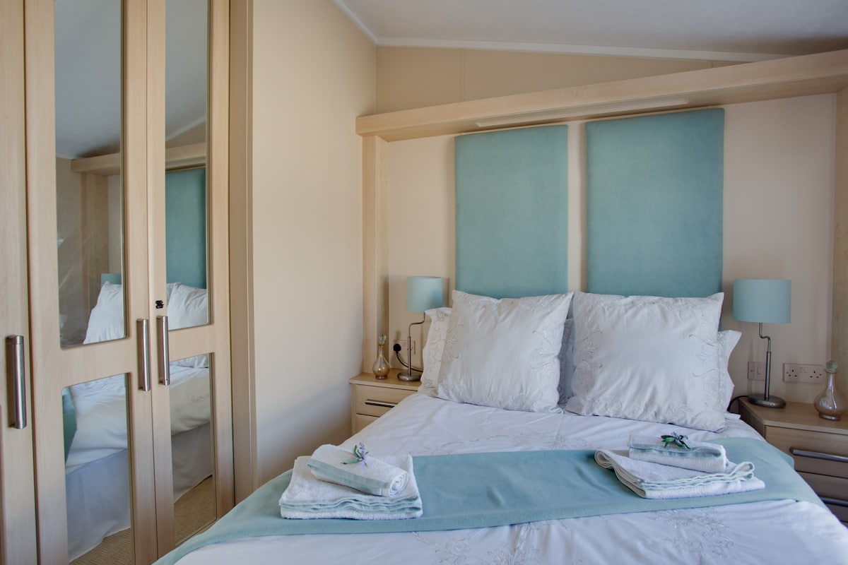 2015 Luxurious Willerby Chambery static holiday home. Located in a quiet corner on Havens Weymouth Bay Holiday Park. Sleeps 4/up to 6 if using sofa bed. 2 Bedrooms. Sorry no pets.The main bedroom en suite toilet and sink and 24” smart tv/ dvd. 1 x twin bedroom and a pull out sofa bed in lounge. 43” smart tv/ DVD player in lounge. Wi-fi , Bluetooth speakers in ceiling. Full size fridge/freezer, microwave, full size cooker. Central heating and double glazing. Patio doors, decking.Allocated parking