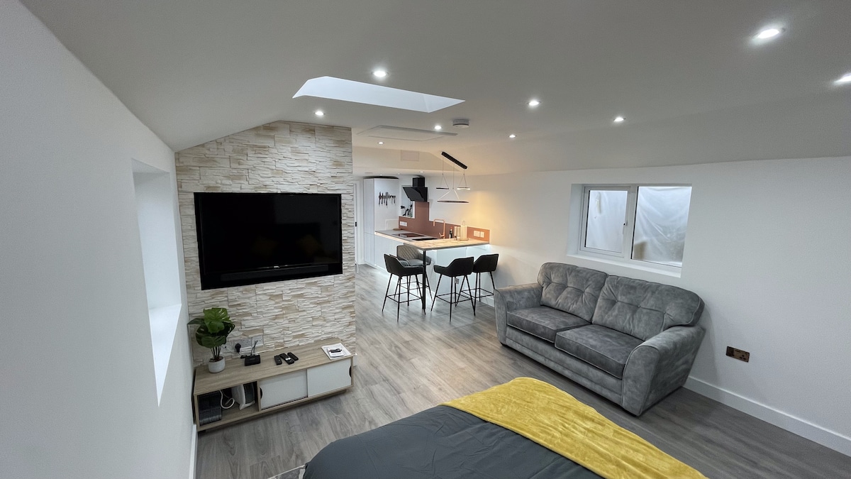Stílhrein 1 rúm stúdíó heitur pottur oglíkamsræktarstöð nálægt Lyme