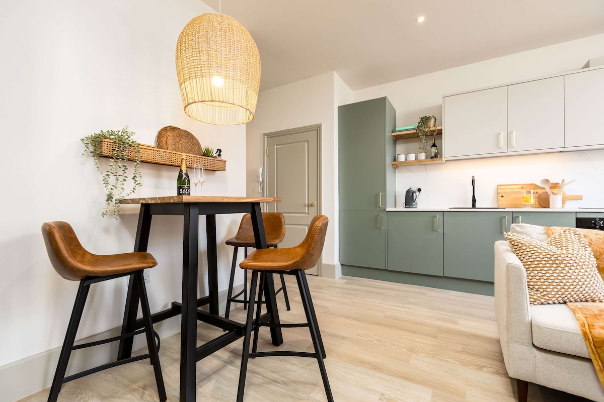 Nútímaleg íbúð á þriðju hæð með mögnuðu sjávarútsýni, nýlega fulluppgerð. Eignin er á fullkomnum stað fyrir orlofsgesti. Stutt 5 mínútna göngufjarlægð frá Boscombe-bryggju sem er með 8 mílna verðlaunaða gullna sandströnd og 1,5 km frá Bournemouth-bryggjunni og miðbænum. Boscombe göngusvæðið hefur upp á margt að bjóða fyrir gesti okkar, allt frá vatnaíþróttum til framúrskarandi gestrisni og er fullkominn valkostur fyrir gistingu eða viðskiptaferð. Insta: the_turret_apartment