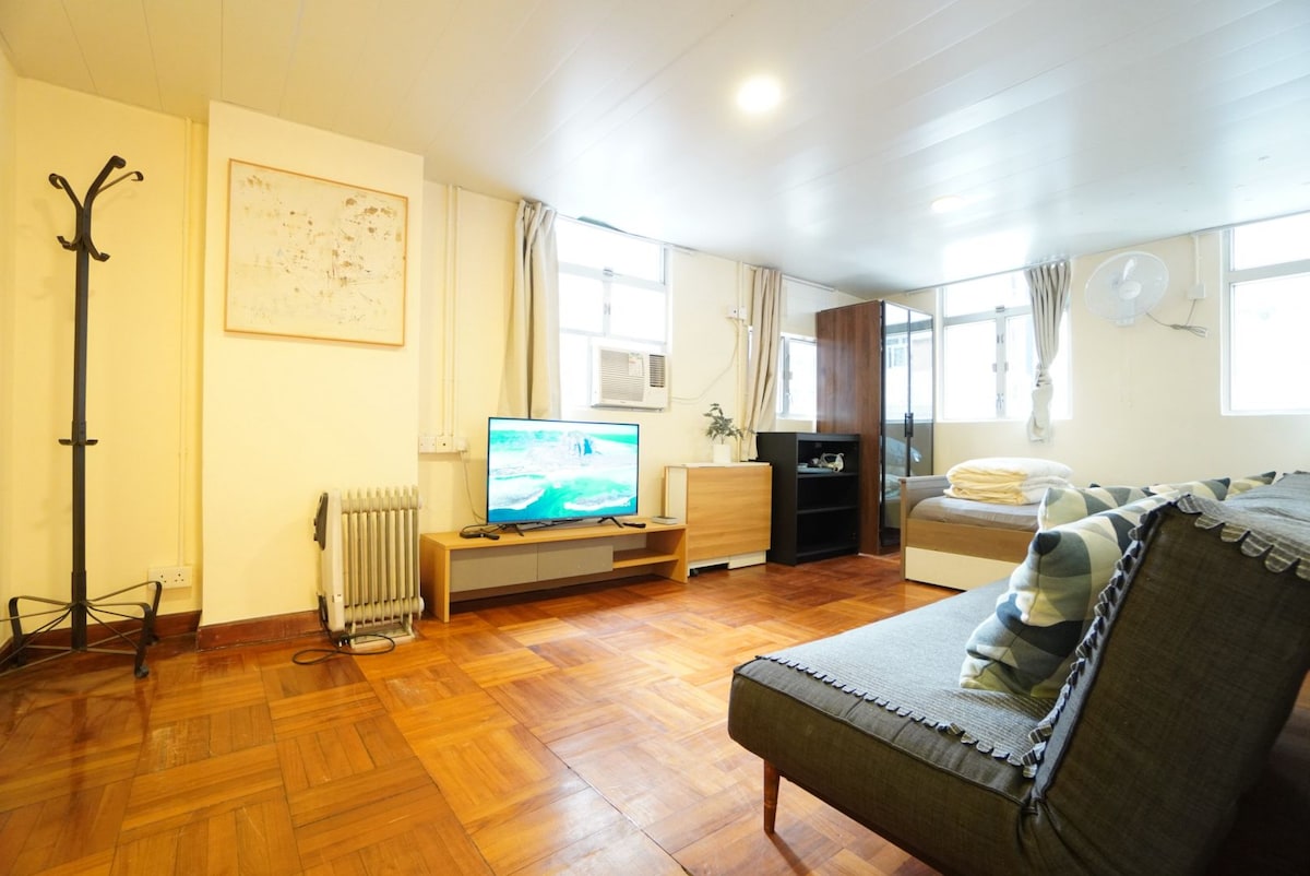 Notaleg fjölskylduíbúð með hjónarúmi í Jordan, Hong Kong! IKEA-húsgögn, sófi 1,2 metrar sem hægt er að opna