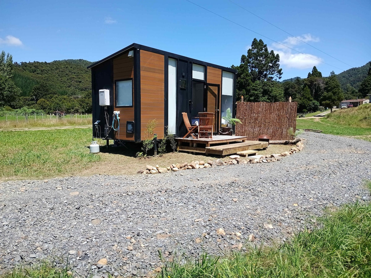 Converted designers studio. Open plan 32m with Queen bed, wardrobe, Kitchen with pantry, fridge, electric hotplate, oven, sink, toaster etc. Dining and Sitting Areas with lots of light. The Shower and WC area has an skylight. The handbasin has cold water only. The private garden space has a lovely sea view. 5 minute walk to the beach, Luke's Kitchen and the Kuaotunu store. Kayak, boogie boards and fishing rods available. No pets. Fully vaccinated guests only please.