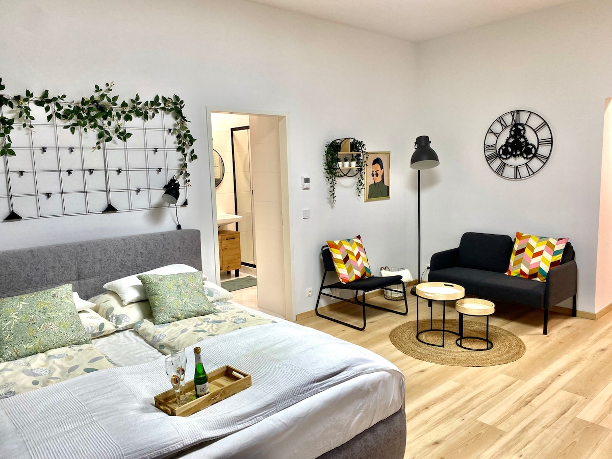 Enska: Borgarlíf en gerir það þægilegt? Verið velkomin í hreiðrið þar sem Vín er eins og þorp á meðan líflegt borgarlíf er í aðeins 10 mínútna fjarlægð! Rúmgóða íbúðin býður upp á öll þægindi sem hjarta þitt þráir. Hratt internet, stórt þægilegt rúm, AC, notalegur sófi fyrir langar kvikmyndakvöld og vel búið eldhús til að elda tilraunir - þú þarft í grundvallaratriðum ekki að yfirgefa húsið í öllum heimsfaraldrinum.