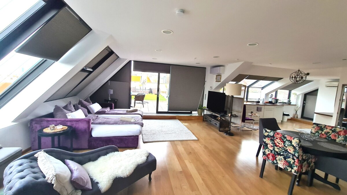 Loft with 115m² und 30m² Terrasse near on of the biggest shopping-areas of Vienna, the Mariahhilfer Strasse, 2 min. from Underground Station of U3 and near the railway Station Westbahnhof. You will love the Penthouse because of the nice view over the roofs of Vienna and the spacious flat and luxury furnituire. This loft is good for Groups and Family (with children), but also couples. We welcome everyone from ervery, be only nice and not to noisy.