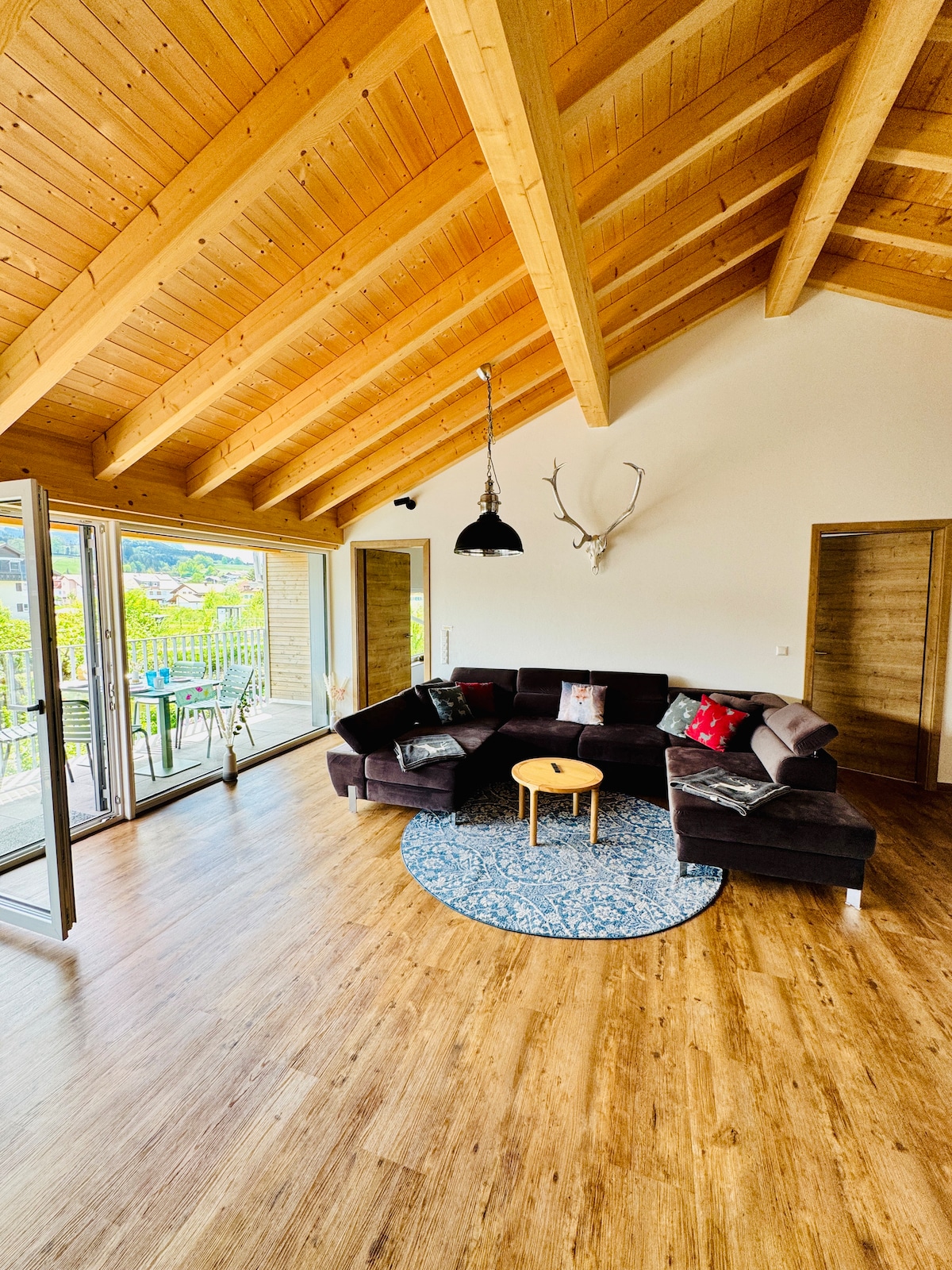 Björt, sjarmerandi íbúðin okkar í Pfronten rúmar allt að 5 gesti og býður upp á magnað útsýni yfir þök Pfronten og Allgäu-fjalla. Frábær staðsetning til að skoða Neuschwanstein-kastala sem og fjölmörg skíða- og göngusvæði. Byrjaðu daginn á morgunverði á svölunum um leið og þú nýtur útsýnisins yfir fjöllin. Þetta er fullkomið afdrep fyrir náttúruunnendur og alla sem vilja slaka á.