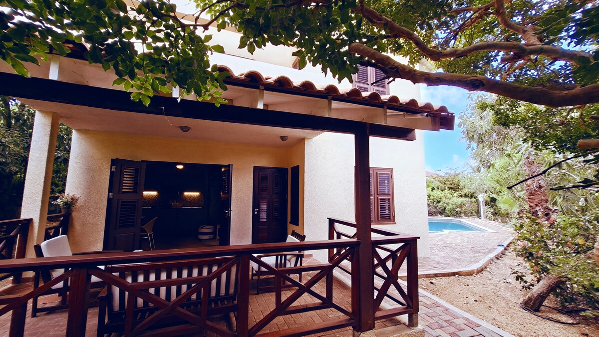 Mooie studio in de rustige woonwijk Curasol. De tuin is voorzien van tropische planten en een zwembad. Erg centraal gelegen op het eiland. Het ligt tussen het centrum van Willemstad en de mooie natuur en stranden van Westpunt in. Ideaal! De ingang van Blue Bay is zo'n 2 minuten rijden (800 meter) en Kokomo bevindt zich op 6 minuten rijden. Binnen 4 minuten rijden ben je bij een grote supermarkt. De bekende Pondjesbrug is 12 minuten rijden. Het ziekenhuis is 10 minuten rijden.