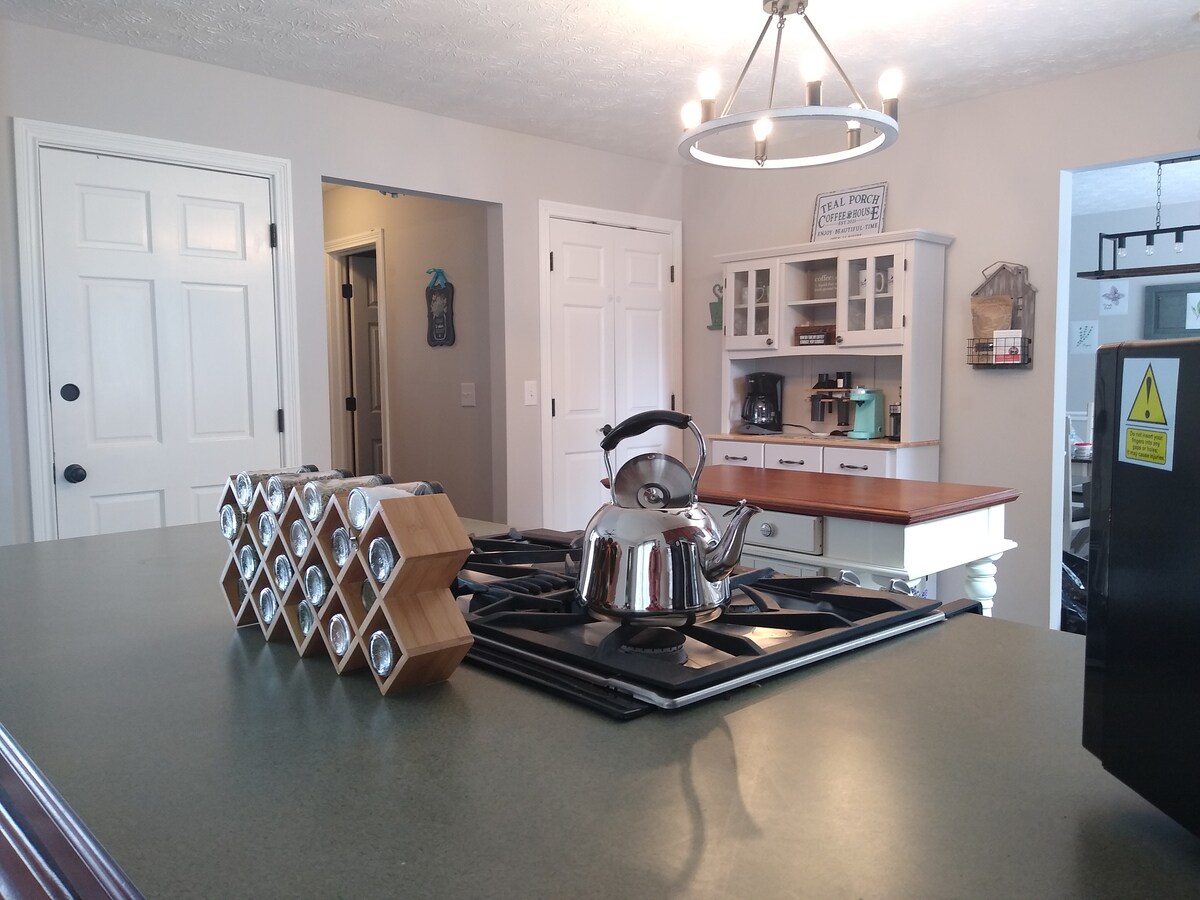 Nútímalegt býli sem býr í þessu 3 svefnherbergja nýuppgerða bóndabæ beint við milliveginn. Á þessu heimili eru 3 svefnherbergi, 2 baðherbergi, stofa, fjölskylduherbergi og borðstofa í eldhúsinu ásamt þvottavél og þurrkara. Allt frá nýjum tækjum til að hlusta á lag á meðan þú ferð í sturtu með bláa tönn hæfileikahátalarann á hjónabaðherberginu. Á þessu heimili eru í dagseiginleikum og kyrrð sveitalífsins. Sittu á bakþilfarinu eða forstofunni til að fá te og sötra yfir dádýr.