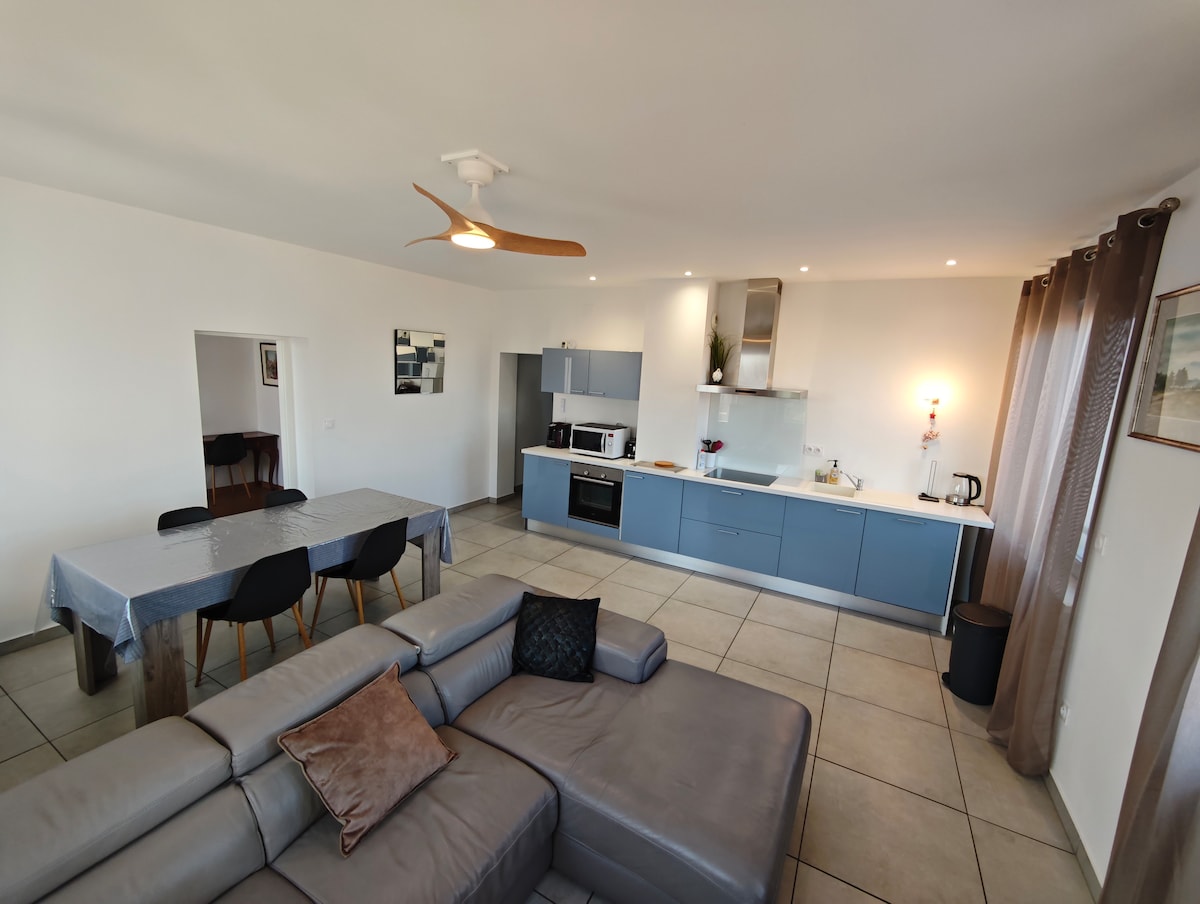 60 fermetra loftíbúð í „terracotta“-stíl, 5 mínútur frá Colmar, í hjarta vínekru Alsace. Alveg enduruppgerð af hönnuði, metin 3 stjörnur í húsgögnum fyrir ferðamenn sem veitir þér raunverulega tryggingu fyrir þægindum. 5 km frá TGV-lestarstöðinni, þjónað með strætisvagni B (stoppistöð í 200 m fjarlægð). Mjög rólegur staður, góð staðsetning, nálægt helstu stöðum Alsace. Gönguferðir eða hjólreiðar frá gistiaðstöðunni. Reiðhjólagrind og hleðsla fyrir rafmagn. Verslanir í þorpinu í göngufæri.