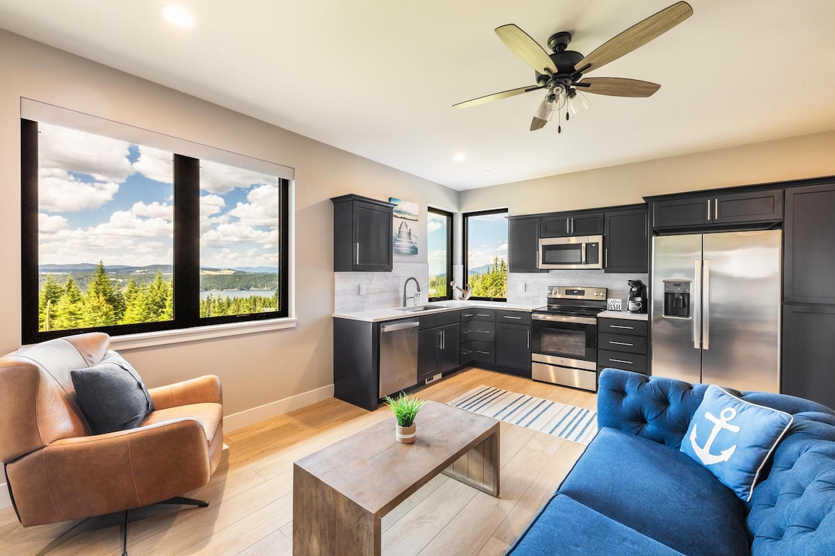 Staðsett í rólegu hverfi í hæðunum milli Coeur D'Alene og Hayden Lake er nýja, fallega innréttaða íbúðin okkar með fullbúnu eldhúsi. Einka eins svefnherbergis íbúð með split king-size rúmi -Aðgangsþrep ójöfn eru ekki með handrið. Hjálp m/farangri í boði. (Sjá mynd) -Einkaverönd m/heitum potti, arni og sjónvarpi -1 bílastæði -Solid WiFi fyrir vinnu -Queen aerobed í boði -Nálægt vötnum, skíðum, veitingastöðum, Silverwood og verslunum Við búum fyrir ofan þig en við förum snemma að sofa og dansa ekki!