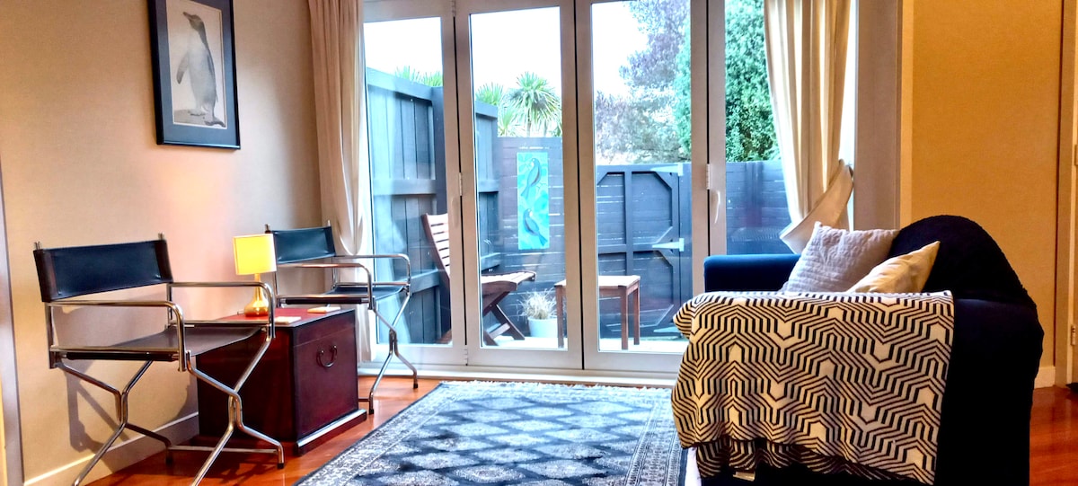 Verið velkomin á heimilið okkar! Notalega svefnplássið okkar er fullkomið fyrir ferðamenn með sérbaðherbergi og eldhúskrók. Það er aðskilið frá aðalhúsinu með eigin inngangi sem gefur þér þitt eigið friðsæla rými. Staðsetningin er tilvalin þar sem kaffihús, veitingastaðir og almenningsgarðar eru í göngufæri. Njóttu kyrrláta svæðisins, ótrúlegs garðs og yndislegs útisvæðis. Aðalatriði staðsetningar: 20 mín. til flugvallar 10 mín. fjarlægð frá Central City 1 km göngufjarlægð frá strætóstoppistöð 2,5 km ganga að Hagley Park