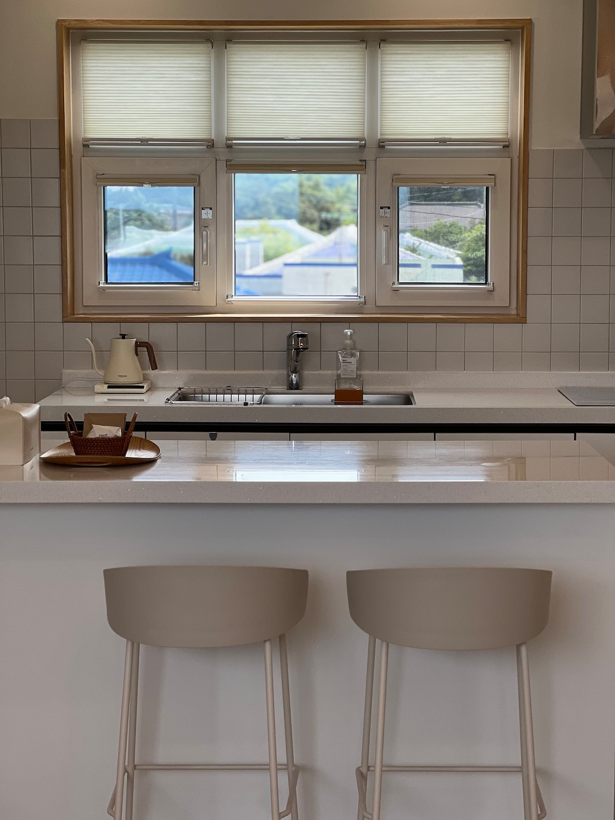 Halló. Við viljum skapa rými þar sem þú getur gleymt pirringi borgarinnar með því að snerta hafið með öldunum sem vinur þinn. Rýmið okkar, sem er í 20 mínútna fjarlægð frá flugvellinum, getur séð Jeju-hafið fyrir framan þig. Space Samsetning 12 pyeong pláss á 3. hæð (með lyftu) 1. Svefnherbergisrými: Herbergið er eins herbergis rými með eldunaraðstöðu. Rúm, vegg-ríðandi sjónvarp, te borð og borðstofuborð fyrir tvo, hanger, standa, vaskur, loft hárnæring, lítill ísskápur (aðskilin frystir), örvun 2. Eldhús: Borðbúnaður og eldhúsáhöld fyrir 2 manns 3. Baðherbergi: Sturta með sólblómum, handklæði, hárþvottalögur, hárnæring, líkamssápa, salernispappír (Athugaðu að ekki er hægt að bjóða tannbursta vegna laga um hollustuhætti). 4. Verönd 5. Grillsvæði Hafgrill tengt sjónum: 20.000 unnar krónur (kol og grill í boði).) Sérstakt grillsvæði er við hliðina á anddyrinu, miðað við rigningarveður. 6. Bílastæði: Rafmagns bílastæði er í boði. 7. Vinsamlegast óskaðu eftir þvottahúsi og þurrkara sérstaklega við innganginn á fyrstu hæð. Þakka þér fyrir.