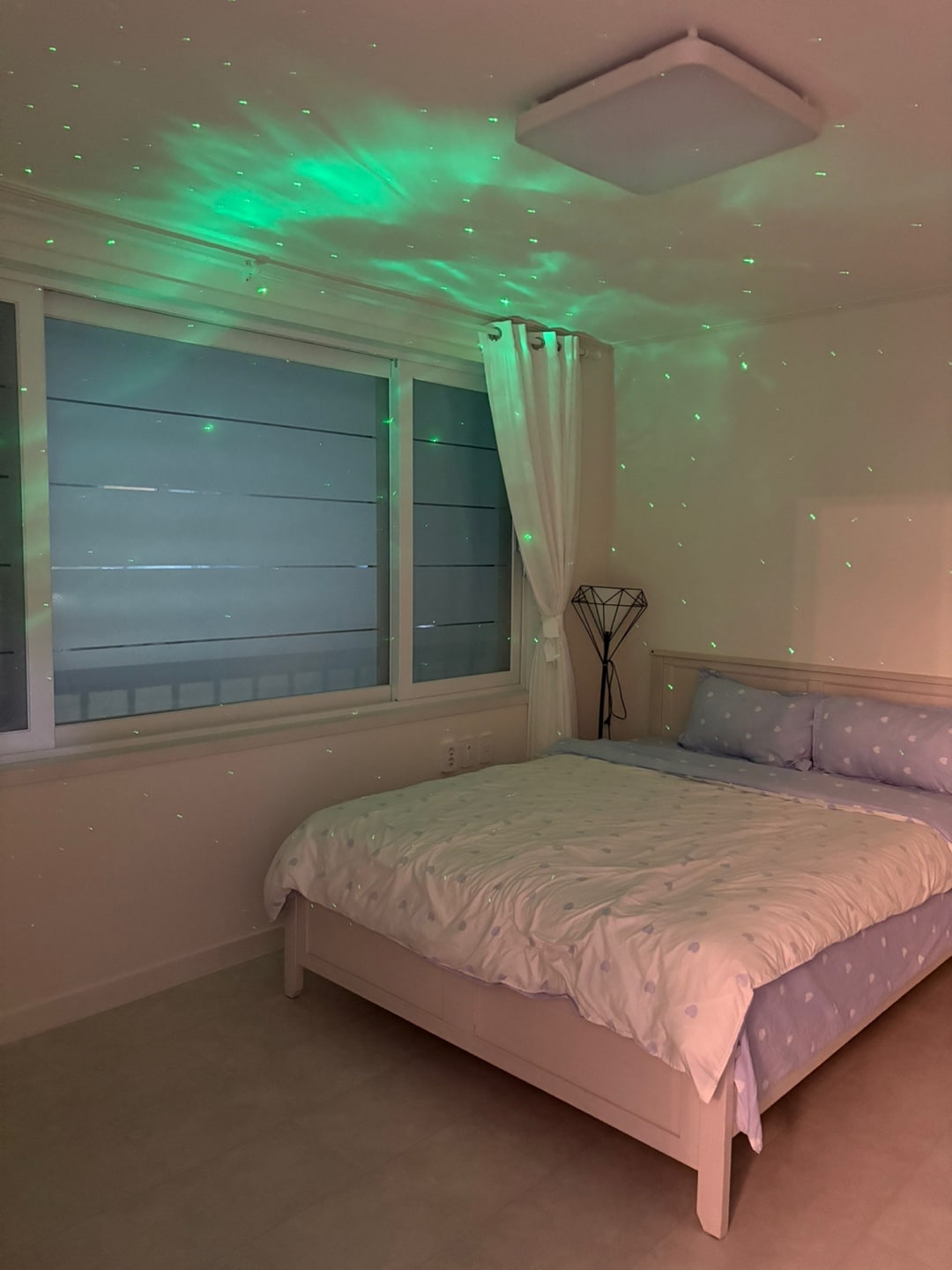Gestarýmið er aðeins 30 pyeong og 34 pyeong íbúðir á annarri hæð. Þetta er rými þar sem sonur minn sem vinnur sem erlendur útlendingur og því er öll aðstaða best. Það snýr í suður svo að sólarljósið er gott svo að það er bjart og hlýtt á veturna. Á sumrin er ferskur andvari síaður í skóginum að framan og aftan svo að hann er svalur og notalegur. Útsýnið yfir sólarupprásina og sólsetrið frá gistirýminu er einnig mjög fallegt. Það er í 150 metra fjarlægð frá leið 7 og það eru engin stór óþægindi við notkun almenningssamgangna. Engu að síður er það kyrrlátt og afskekkt svo að þér líði eins og heima hjá þér með bestu afslöppunina og íhugunina. Gestgjafinn býr á fyrstu hæðinni svo að þú getur leyst úr óþægindum hvenær sem er og gestgjafinn er ævintýralistamaður sem gekk í skóla árið 1988. Ég hef gefið út meira en 30 einkabækur, þar á meðal 26 ævintýrabækur, og ég er enn virkur. Ef þú vilt lesa vinnuhús gestgjafans meðan á dvöl þinni stendur lánum við þér það. Gæludýr eru þó ekki leyfð. Við flytjum út um leið og við finnum hana. Athugaðu að þetta er fyrir gesti með ofnæmi fyrir feldi.