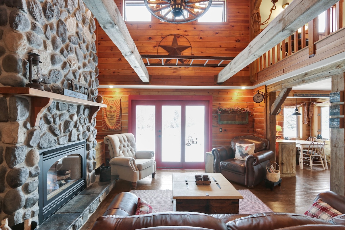Stígðu inn í sveitalegan sjarma og nútímaþægindi í Wazeecha Lodge, heimili með 3 svefnherbergjum og 2 baðherbergjum sem er fullkomlega staðsett í stuttri göngufjarlægð frá hinu stórfenglega Wazeecha-vatni. Sökktu þér í hlýju og fegurð þessa Golden Eagle Log Home með hvelfdu lofti, náttúrulegum viðaráherslum og stórum gluggum sem fylla rýmið náttúrulegri birtu. Þessi skáli hefur allt sem þú þarft til að komast í friðsælt frí, allt frá kyrrlátum morgnum á yfirbyggðu veröndinni utandyra til kvölds í kringum eldstæðið.