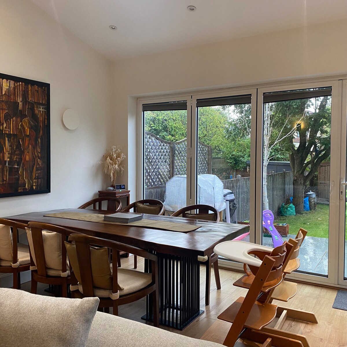 Viltu heimsækja London en ekki vera í fjörinu? Komdu og gistu í jaðri skógarins en aðeins 20 mín frá Oxford Street. Með sérstakri 15 fermetra skrifstofu með sófa og vinnurými fyrir tvo. Tilvalið fyrir stafræna hirðingja. Njóttu þess að ganga um Epping Forest og vakna við fuglasöng. Slakaðu á í risastóra baðkerinu meðan þú horfir á sólina setjast eða bara hafa það notalegt og horfa á myndina þína fyrir framan opinn eldinn. Fáðu þér bollu í bakgarðinum og fjölskyldumáltíðir í kringum stóra borðstofuborðið.