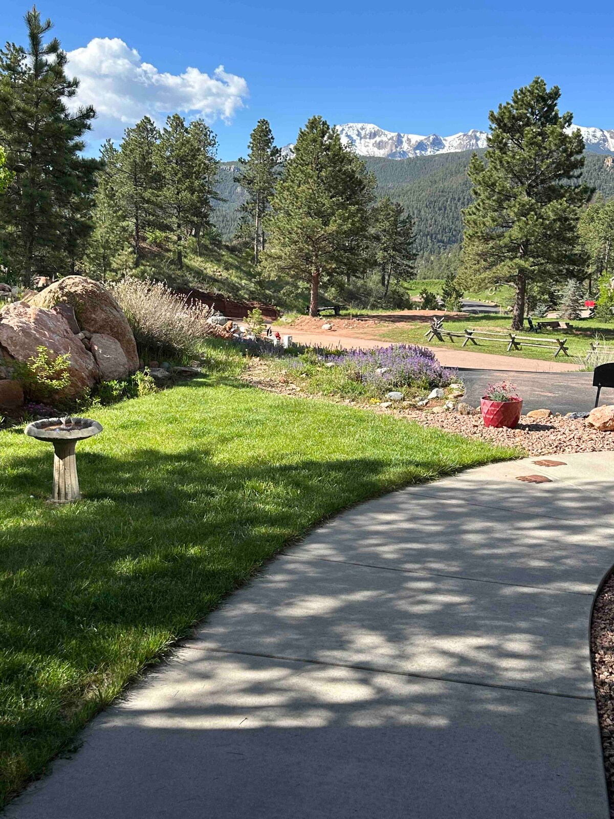 Fullkomin útsýni yfir Pikes Peak frá stofu, svefnherbergi og verönd þessarar stórkostlegu gestaíbúðar í fjallum Colorado í klassískum stíl Colorado. Í svítunni er að finna alla neðri hæð heimilisins. Það er sér, aðskilið og hefur eigin inngang. Þetta er fullbúið eldhús og miðlæg staðsetning sem gerir þetta að fullkomnum stað fyrir frí í Colorado. Hins vegar gætirðu mögulega aldrei viljað fara þar sem Ponderosa Pines, Aspen og fallegar gönguleiðir eru rétt við götuna.