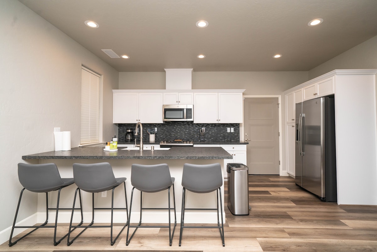 Stökktu á glæsilegt þriggja svefnherbergja heimili okkar á góðum stað til að skemmta sér og slaka á fyrir fjölskylduna. Þér mun líða eins og heima hjá þér með rúmgóða og fjölskylduvæna gistiaðstöðu! Vinin í bakgarðinum býður upp á fullkomið umhverfi til að synda, grilla eða slaka á í heita pottinum. Rólegt hverfið og einkabakgarðurinn eru friðsælt afdrep. Auk þess skaltu taka loðna vini þína með þar sem við leyfum að hámarki tvö gæludýr. Bókaðu gistingu núna fyrir ógleymanlegt frí.