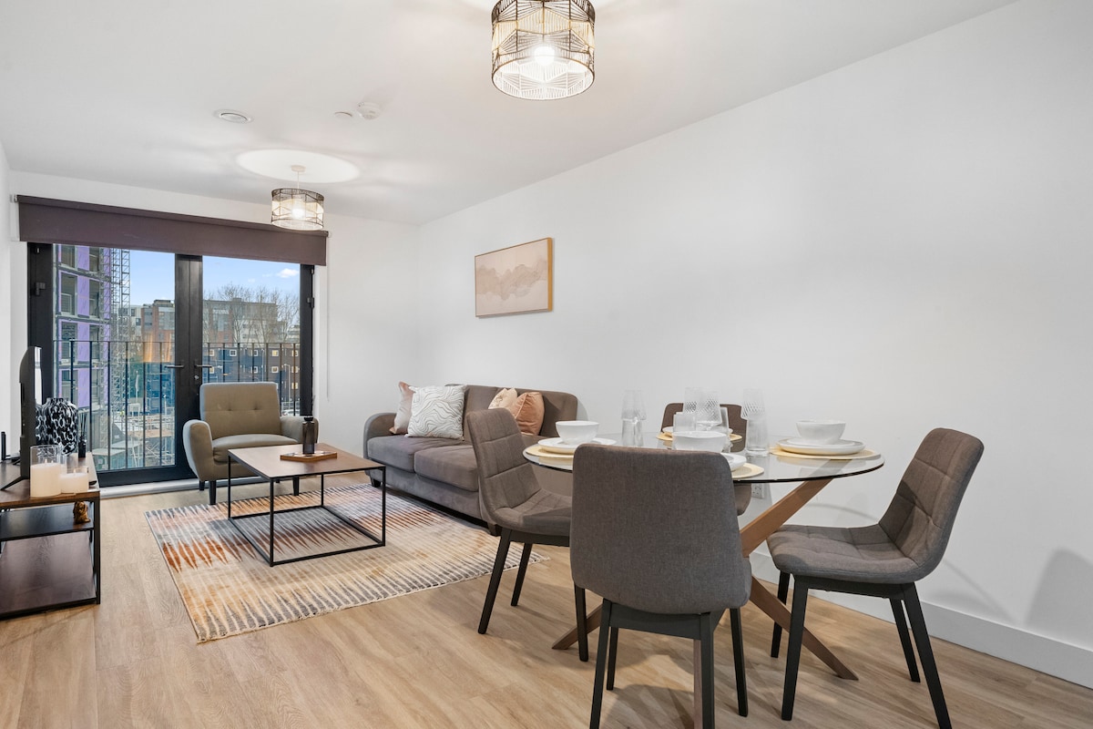 Verið velkomin á heimili þitt að heiman í hjarta Liverpool! Þessi rúmgóða (80m2 / 860sq ft) íbúð er staðsett í hinu eftirsótta L1 póstnúmeri sem býður upp á fullkomna blöndu af þægindum og þægindum. Við biðjum þig vinsamlegast um að lesa og skilja húsreglurnar okkar áður en þú bókar gistinguna. Íbúðin er staðsett í íbúðarhúsnæði, svo sem þetta er ekki hentugur fyrir aðila, viðburði eða hátíðahöld og við höfum stranga stefnu gegn háværri tónlist eða hávaða.