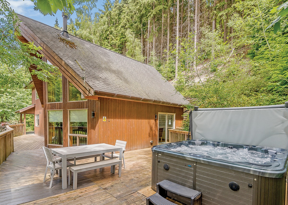 Stórkostlegur, sérsniðinn skáli sem hentar fullkomlega fyrir fjölskyldufrí.