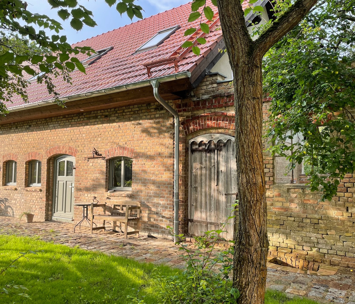 Die gemütliche, stilvoll eingerichtete Ferienwohnung, in idyllischer, ruhiger dörflicher Lage, befindet sich in einem historischen, liebevoll mit Naturmaterialien renovierten Bauernhaus mit schönem weitläufigen Garten. Genießen Sie die Ruhe und die Schönheit der zauberhaften ländlichen Umgebung. Die herbschöne Landschaft Brandenburgs, die wegen ihrer zahlreichen Seen und Wälder ihre Natürlichkeit bewahren konnte, lädt zum Radfahren, Wandern, Boot fahren und Schwimmen ein.
