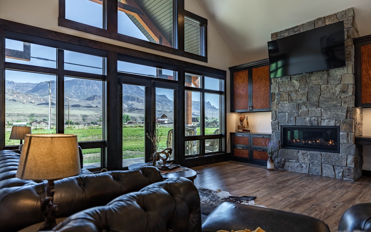Welcome to Luxury Yellowstone™ #1 most wish listed Airbnb for Wyoming in 2024 Built in 2020- luxury cabin on 5 acres. Just 25 minutes from Yellowstone’s East Gate on the Buffalo Bill Scenic Byway! Enjoy mountain views, floor-to-ceiling windows, a grand stone fireplace, leather-wrapped cabinets, luxe bedding, and incredible stargazing. Sunrise to sunset, the porch offers breathtaking beauty- and maybe even wildlife sightings! New- firepit & deluxe seating for 4! Cabin design is copyrighted.