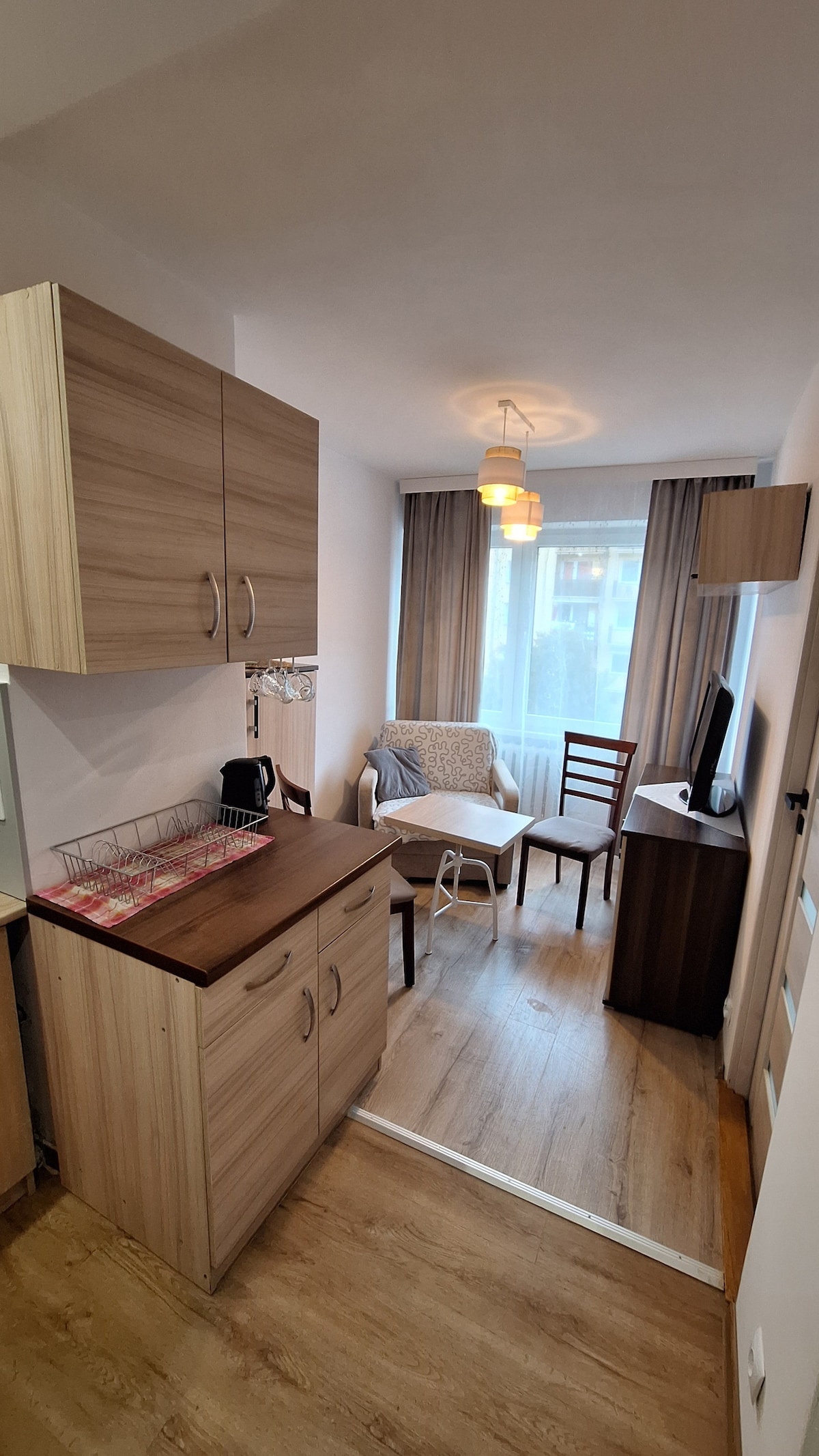 Íbúðin er staðsett í íbúðarblokk á annarri hæð fyrir 2-3 manns í 15 mín. göngufjarlægð frá lestarstöðinni. Það er óvarið bílastæði fyrir framan blokkina. Leiksvæði og stöðuvatn í 5 mín göngufjarlægð frá íbúðinni. Á svæðinu er elbląg-ostróda-síki, Teutonic-kastali, vígvöllur í Grunwald og mörg falleg vötn. Ég býð þér. Einnig er hægt að greiða með því að blikka.