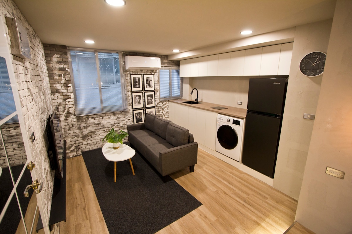 📌 住宿須知 訂房後,入住前48小時就能看到入住密碼及細節 **月租金特價優惠 週租折扣 工業風套房,地點便利,期待您的好評!*** ** 期待通過您的入住來獲得好的評價 🔹 禁菸:房源 嚴格禁止吸菸,請務必遵守規定。 🔹 樓層提醒:房源 爬4樓窄樓梯,若能接受再訂房喔! 🔹 環境提醒:外圍建築較舊,但我會盡力準備好您所需的設備,讓您住得舒適! 🏡 房源設備 🔸 廚房用具 ✔電熨斗 ✔ 二層大冰箱、電陶爐、小煮鍋、鍋子 ✔ 碗盤、筷子、刀叉、湯匙、勺子、菜刀、沾板、紅酒開瓶器 ✔ 濾水器(洗臉盆)提供安心的飲用水 ✔ 膠囊咖啡機 + 膠囊咖啡,讓您輕鬆享受美味咖啡,也能當煮熱水器 ✔ 雙人床 + 單人床(兩張床位於同一空間) ✔ 床墊、床套、棉被、室內拖鞋 ✔ 電視,Netflix 讓您放鬆享受娛樂時光 🔸 廁浴設備 ✔ 洗髮精、沐浴乳、肥皂 ✔ 卸妝液、化妝水、乳液、面霜(化妝棉 貼心提供基本保養品) ✔ 毛巾、浴巾 ✔ 牙膏(請自備個人牙刷和刮鬍刀) ✔ 洗衣機(洗脫烘) + 洗衣精、柔軟精 ✔ 晾衣桿、衣架